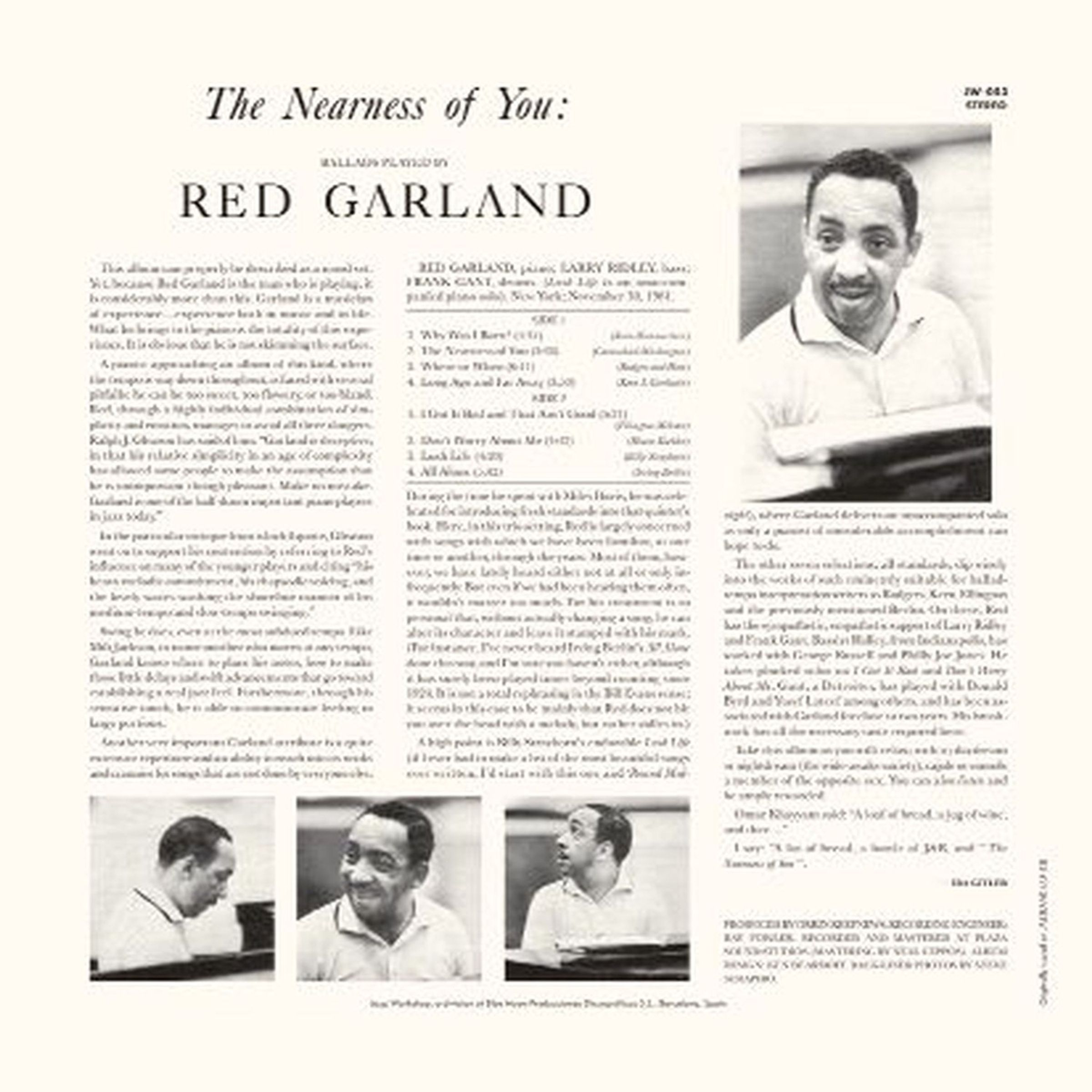 Had Miles Davis not put Red Garland in the piano chair of what was to become the most influential jazz band of the 1950s, the pianist might have continued in semi-obscurity. As things turned out, Garland affected the development of jazz piano, particularly in his influence on Bill Evans’s approach to chord voicings. After he left Davis in 1958, Garland had a successful decade with his trio, all but dropped out of music for another ten years, then had a substantial comeback that lasted until his death in 1984. He made dozens of albums that are among the most popular OJCs. This collection of ballads offers the listener a clear view of Garland’s style, which was characterized by taste, harmonic sophistication, a remarkable sense of touch and, always, at even the slowest tempo, irresistible swing. The material he chose is among the finest works in the great American songbook of the classic era.