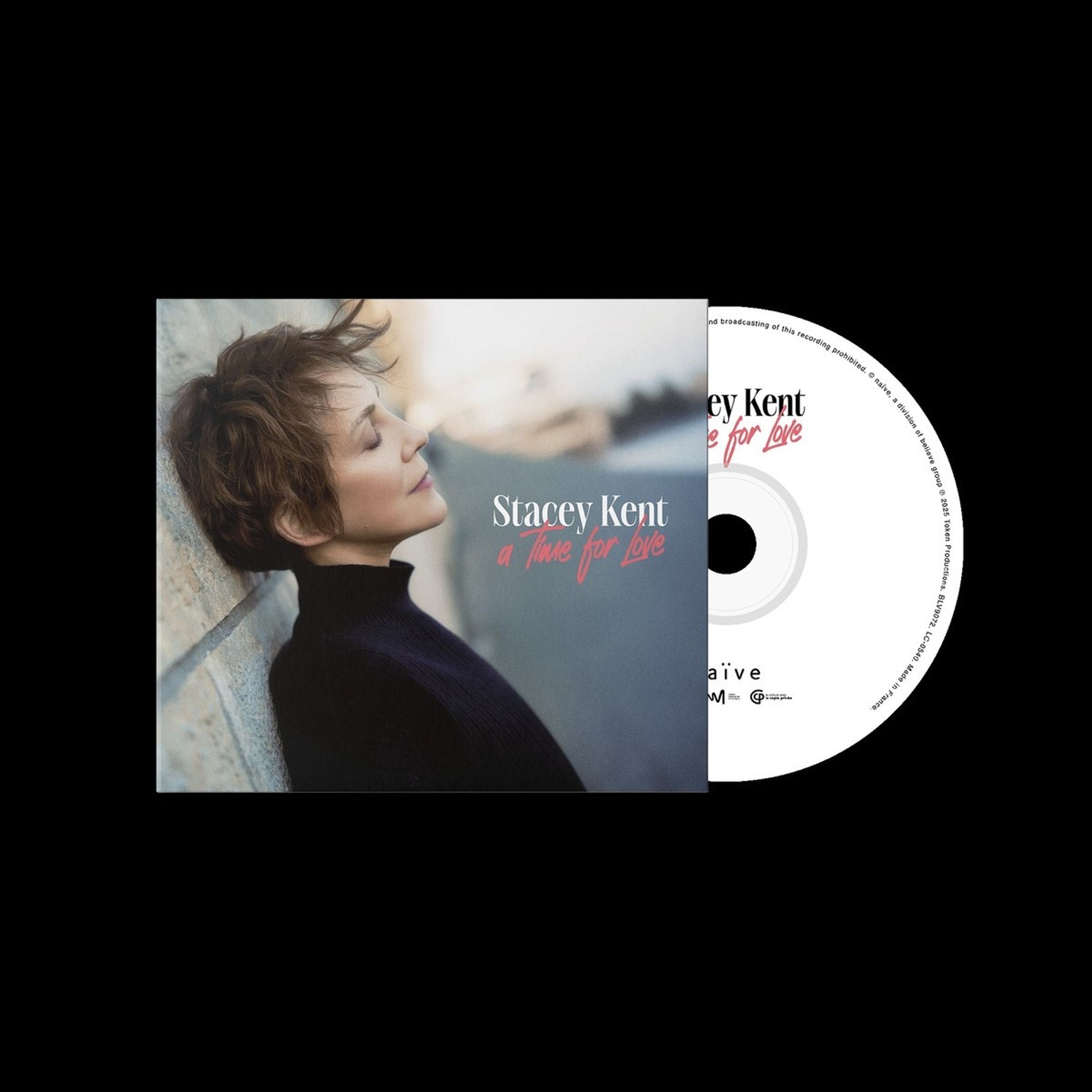„Stacey Kent, a Time for Love“. Frau lehnt entspannt an einer Wand, die Augen geschlossen., CD