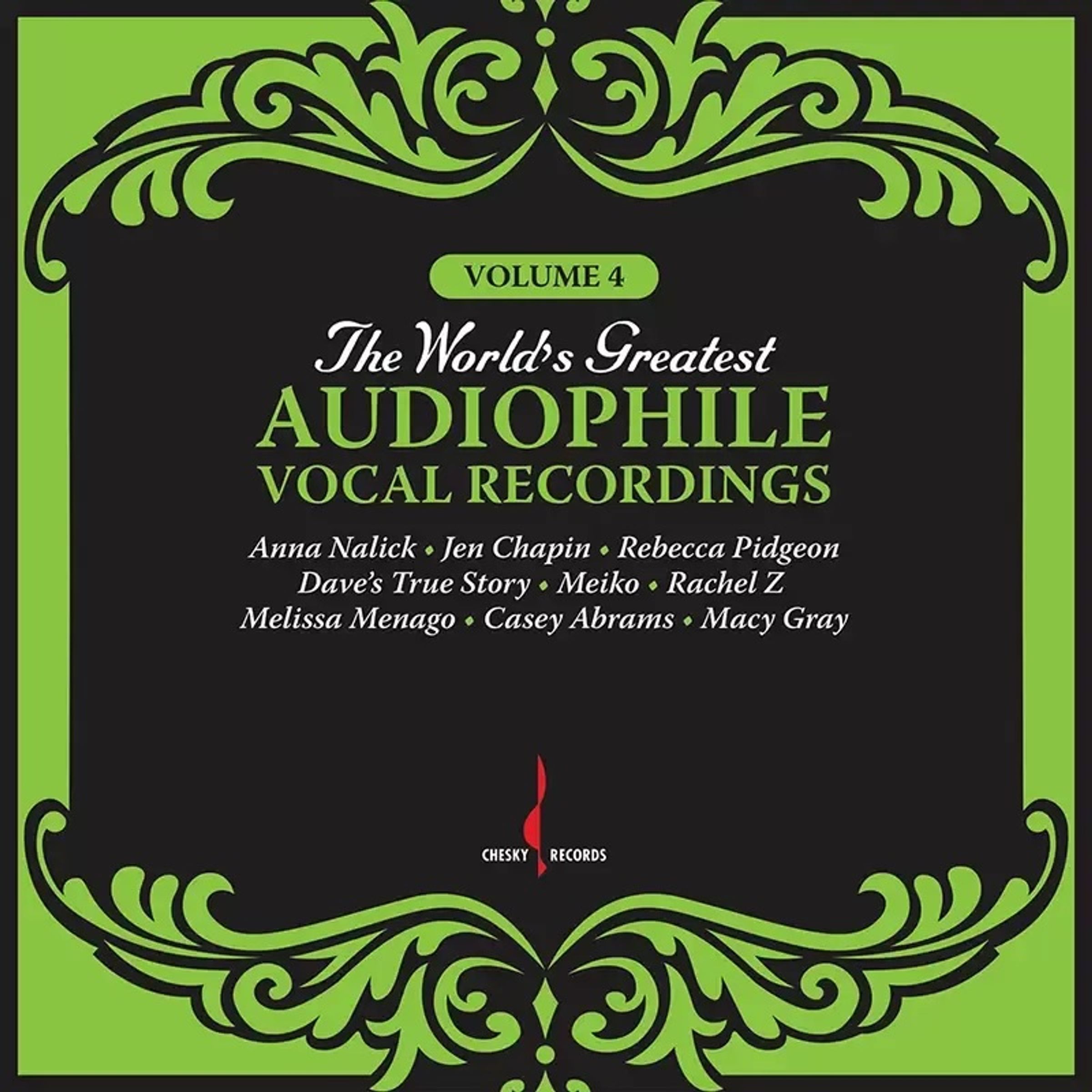 Chesky Records, weltweit berühmt für die außergewöhnliche Qualität seiner hochauflösenden Aufnahmen setzt mit „The World's Greatest Audiophile Vocal Recordings Vol. 4“ endlich die die beliebte Kompilation-Reihe fort! Das Album wurde mit bahnbrechenden Aufnahmetechniken und Geräten von den renommierten Toningenieuren Nicholas Prout und Bob Katz aufgenommen und bietet eine Reihe faszinierender Darbietungen einer Auswahl sensationeller Sängerinnen und Sänger. Die Bandbreite reicht von der britisch-amerikanischen Sängerin und Schauspielerin Rebecca Pidgeon sowie der US-amerikanischen Folk-Pop-Sängerin und Songwriterin Anna Nalick über die R&B-Ikone aus Ohio, Macy Gray und dem amerikanischen Jazz-Pop-Künstler Casey Abrams bis hin zur New Yorker Jazz- und Rockpianistin Rachel Z.