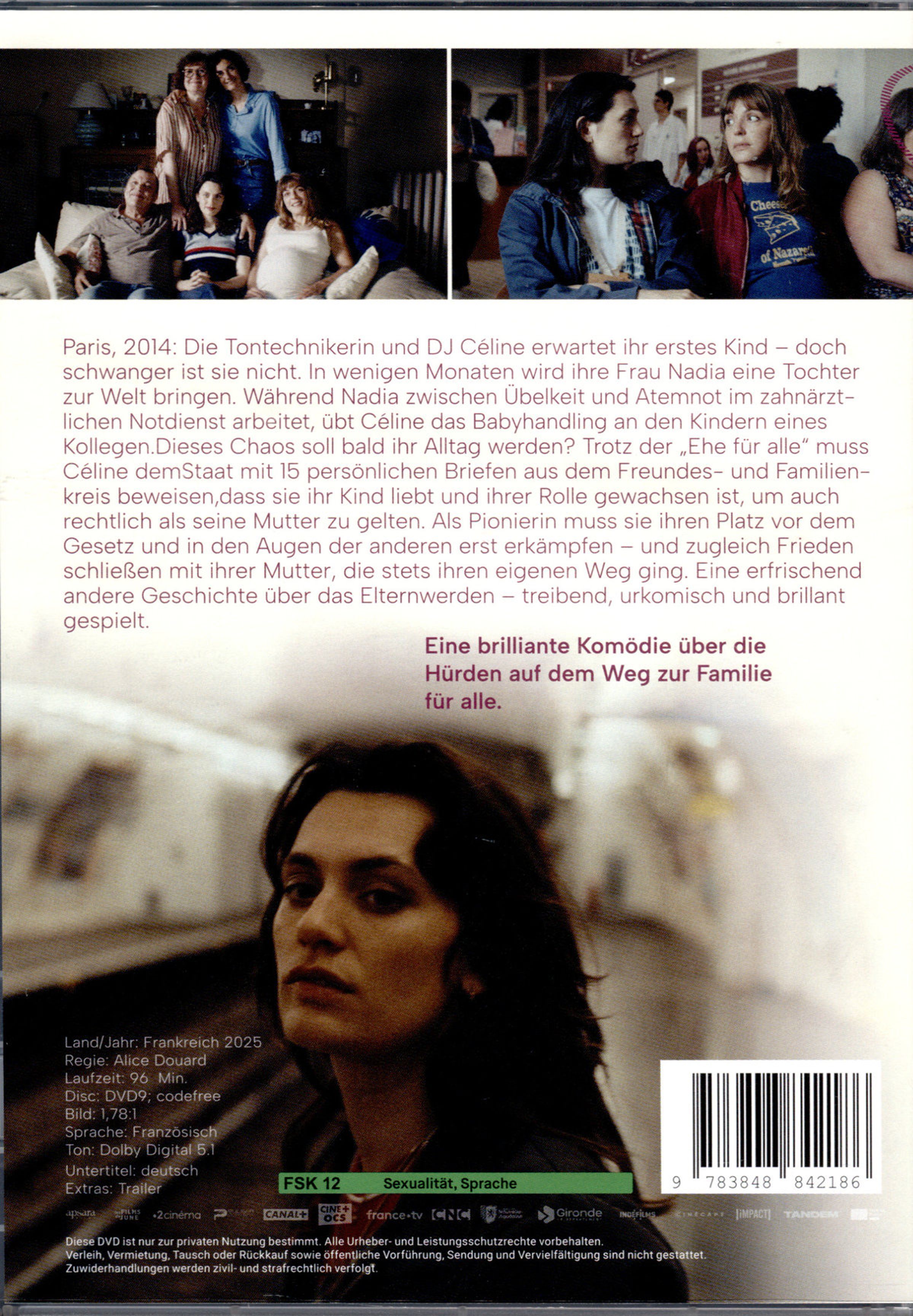 Paris, 2014: Die Tontechnikerin und DJ Céline erwartet ihr erstes Kind - doch schwanger ist sie nicht. In wenigen Monaten wird ihre Frau Nadia eine Tochter zur Welt bringen. Während Nadia zwischen Übelkeit und Atemnot im zahnärztlichen Notdienst arbeitet, übt Céline das Babyhandling an den Kindern eines Kollegen. Dieses Chaos soll bald ihr Alltag werden? Trotz der Ehe für alle muss Céline dem Staat mit 15 persönlichen Briefen aus dem Freundes- und Familienkreis beweisen, dass sie ihr Kind liebt und ihrer Rolle gewachsen ist, um auch rechtlich als seine Mutter zu gelten. Als Pionierin muss sie ihren Platz vor dem Gesetz und in den Augen der anderen erst erkämpfen - und zugleich Frieden schließen mit ihrer Mutter, die stets ihren eigenen Weg ging.