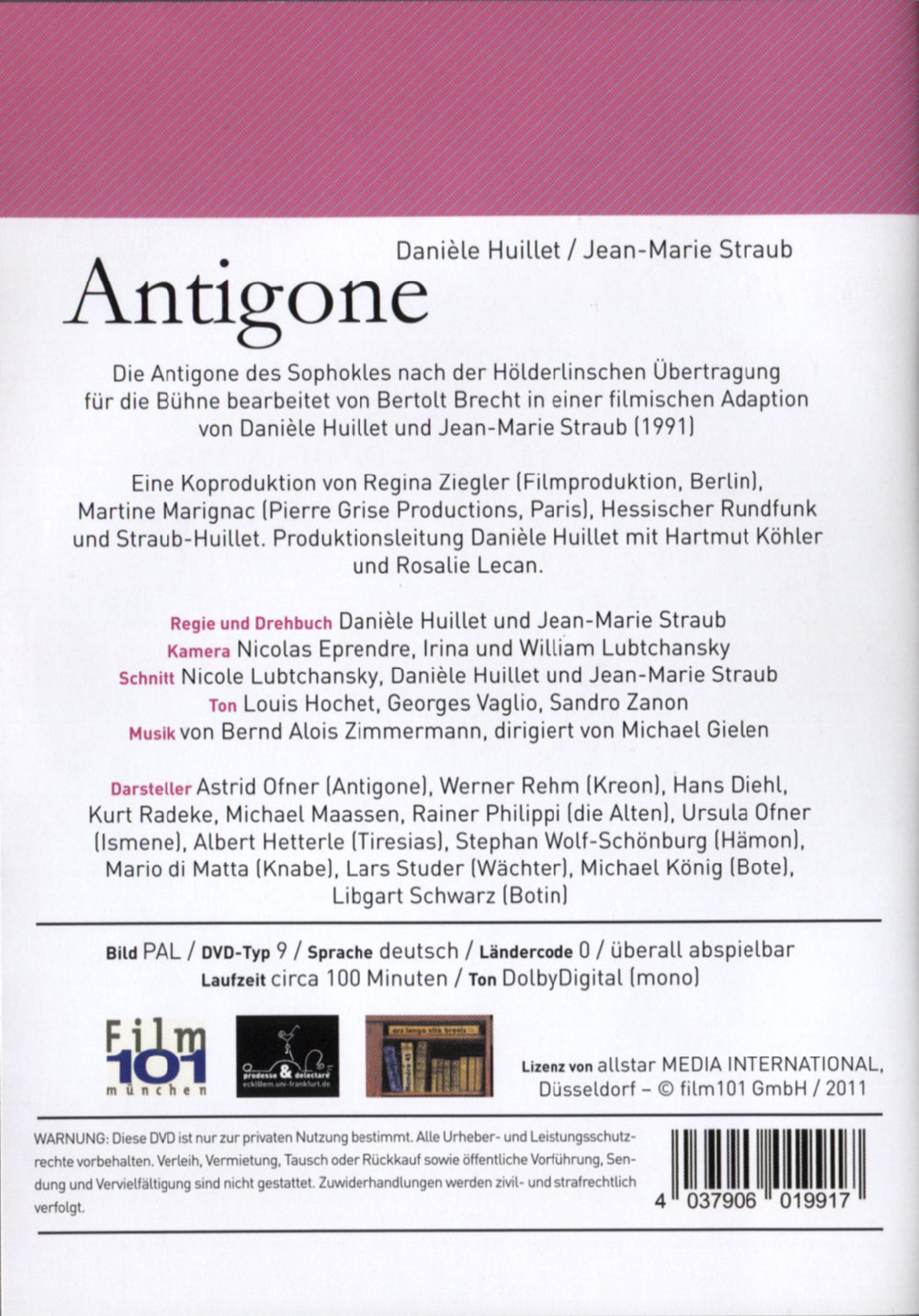 Die Antigone des Sophokles nach der Hölderlinschen Übertragung für die Bühne bearbeitet von Bertolt Brecht in einer filmischen Adaption von Daniele Huillet und Jean- Marie Straub (1991)
