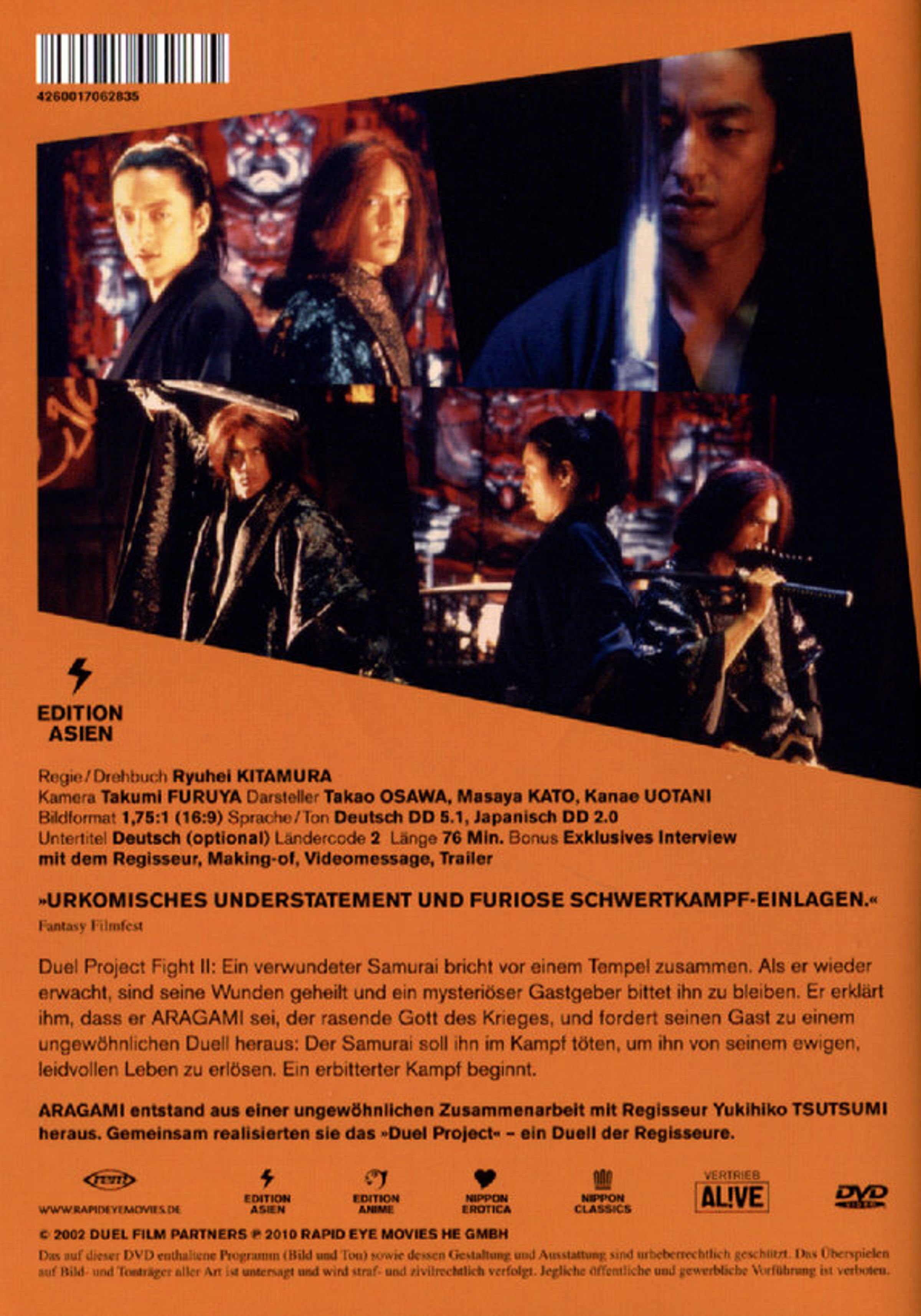"Aragami" steht in der Tradition klassischer japanischer Samuraifilme, geht aber stilistisch noch weit darüber hinaus und begeistert neben seiner visuellen Kraft durch pointierte, spannungsgeladene Dialoge, die im unausweichlichen Kampf zweier Schwertkunstmeister kulminieren.