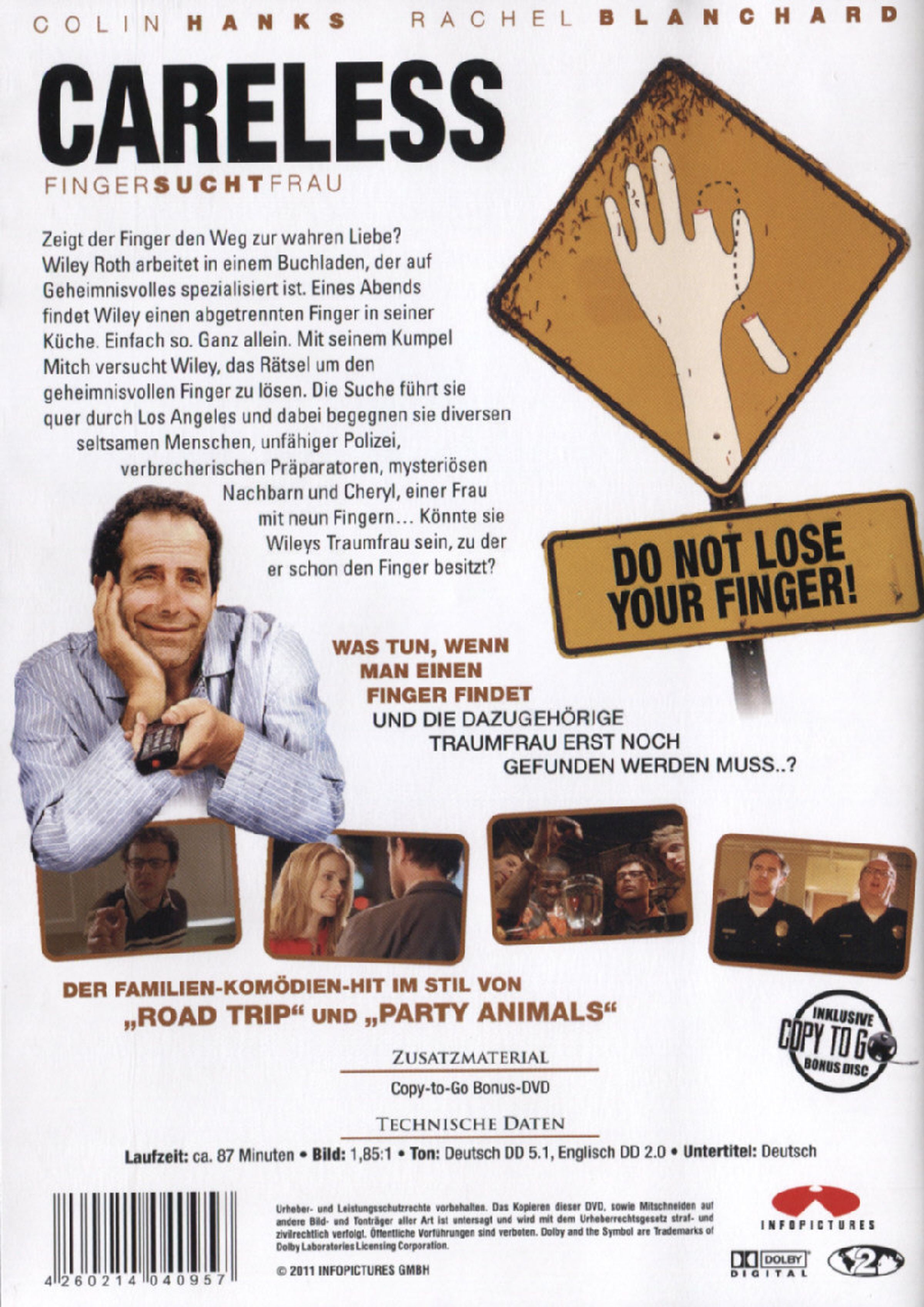 Wiley Roth arbeitet in einem Buchladen, der auf Geheimnisvolles spezialisiert ist. Eines Abends findet Wiley einen abgetrennten Finger in seiner Küche. Einfach so. Ganz allein. Mit seinem Kumpel Mitch versucht Wiley, das Rätsel um den geheimnisvollen Finger zu lösen. Die Suche führt sie quer durch Los Angeles und dabei begegnen sie diversen seltsamen Menschen, unfähiger Polizei, verbrecherischen Präparatoren, mysteriösen Nachbarn und Cheryl, einer Frau mit neun Fingern… Könnte sie Wileys Traumfrau sein, zu der er schon den Finger besitzt?