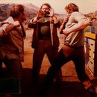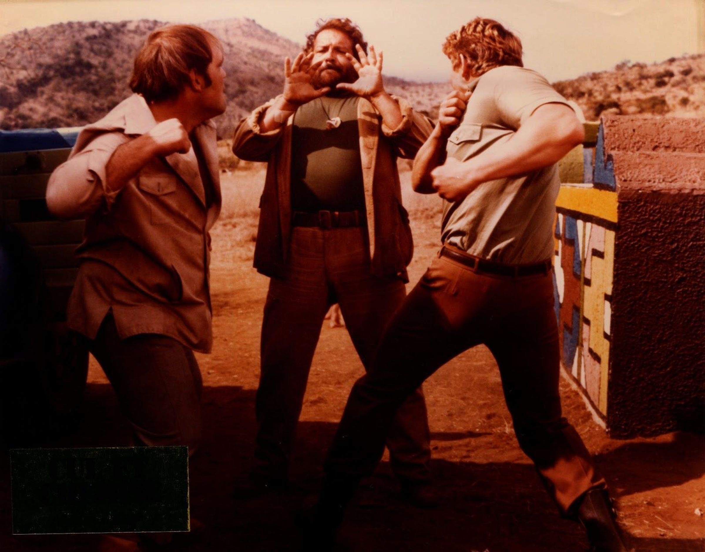 Tom trägt den Spitznamen "Nilpferd", warum wohl? Slim wird von seinen Freunden "Krokodil" gerufen, weil der Bequeme selbst bei geschlossenen Augen immer hellwach und blitzschnell ist. Nilpferd Tom fährt Touristen und Großwildjäger in seinem alten Bus durch die Gegend. Krokodil Slim hat etwas dagegen, daß die Tiere von reichen Nichtsnutzen ausgerottet werden. Ergebnis: die Pirschgänger finden meist Platzpatronen in ihren Gewehrläufen, und Tom muß öfter ein Rad wechseln, das Slim zerschossen hat. Dann tauchen der reiche Spekulant Ormond und seine Schlägertruppe auf. Ormond plant ein riesiges Touristenzentrum. Der ehemalige Box-Champion bedroht die Eingeborenen und wendet brutalste Methoden an, um seine Ziele zu erreichen. Aber er hat seine Rechnung ohne Tom und Slim gemacht. Die beiden sind sich einig: auf einen groben Klotz gehört ein grober Keil. Und damit haben sie Erfolg. Ormond und seine Kumpane suchen schließlich das Weite.