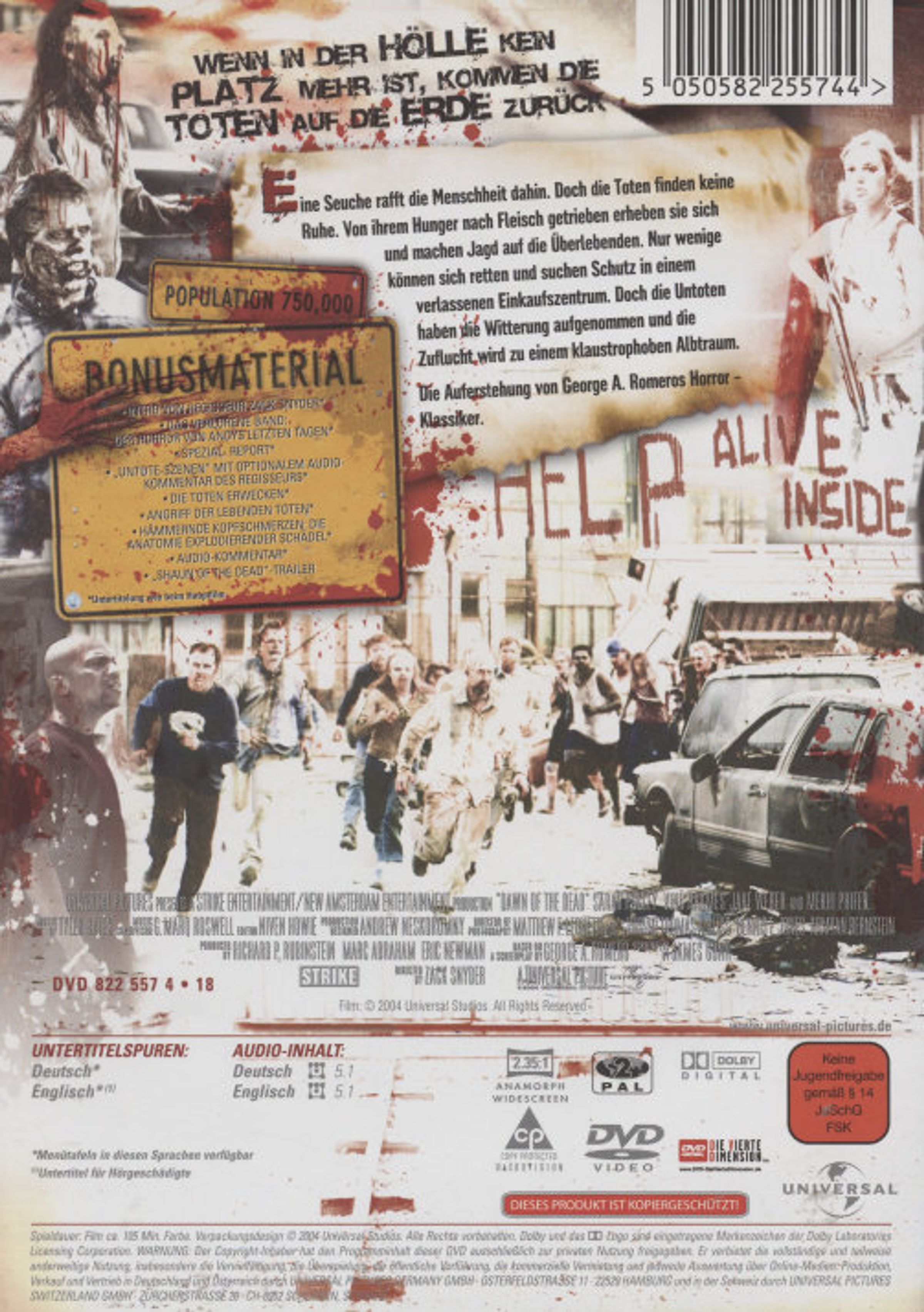 - Intro von Regisseur Zack Snyder; Das verlorene Band: Der Horror von Andys letzten Tagen; Spezial-Report; "Untote Szenen" mit optionalem Audiokommentar des Regisseurs; Die Toten erwecken; Angriff der lebenden Toten; Hämmernde Kopfschmerzen: die Anatomie explodierender Schädel; Audiokommentar; "Shaun of the Dead" Trailer;