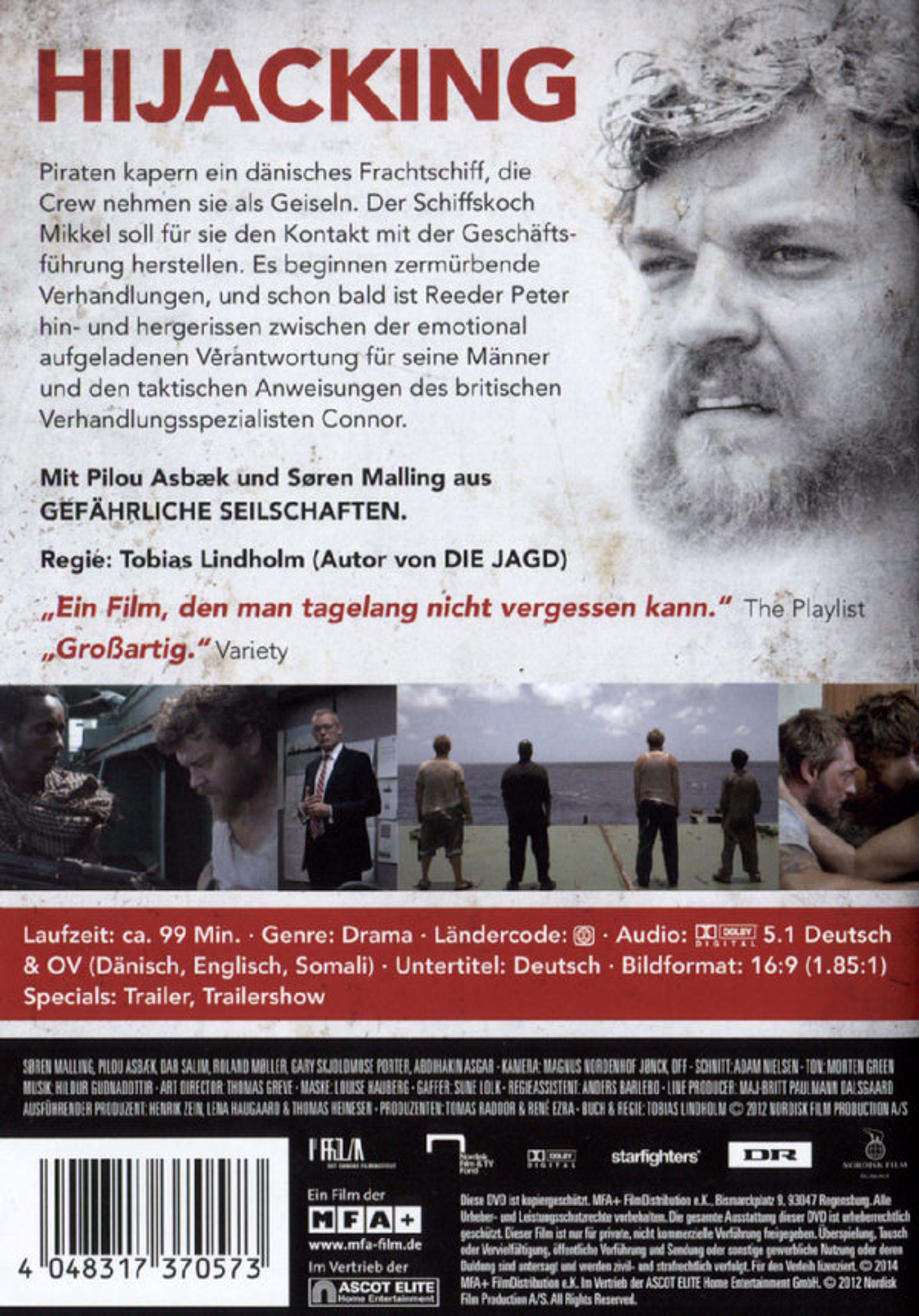 Spannend und beklemmend realistisch schildert A HIJACKING die nervenzehrende Ungewissheit der Verhandlungen und den Druck und die Angst, die sowohl auf den Geiseln als auch auf den Vermittlern lasten.