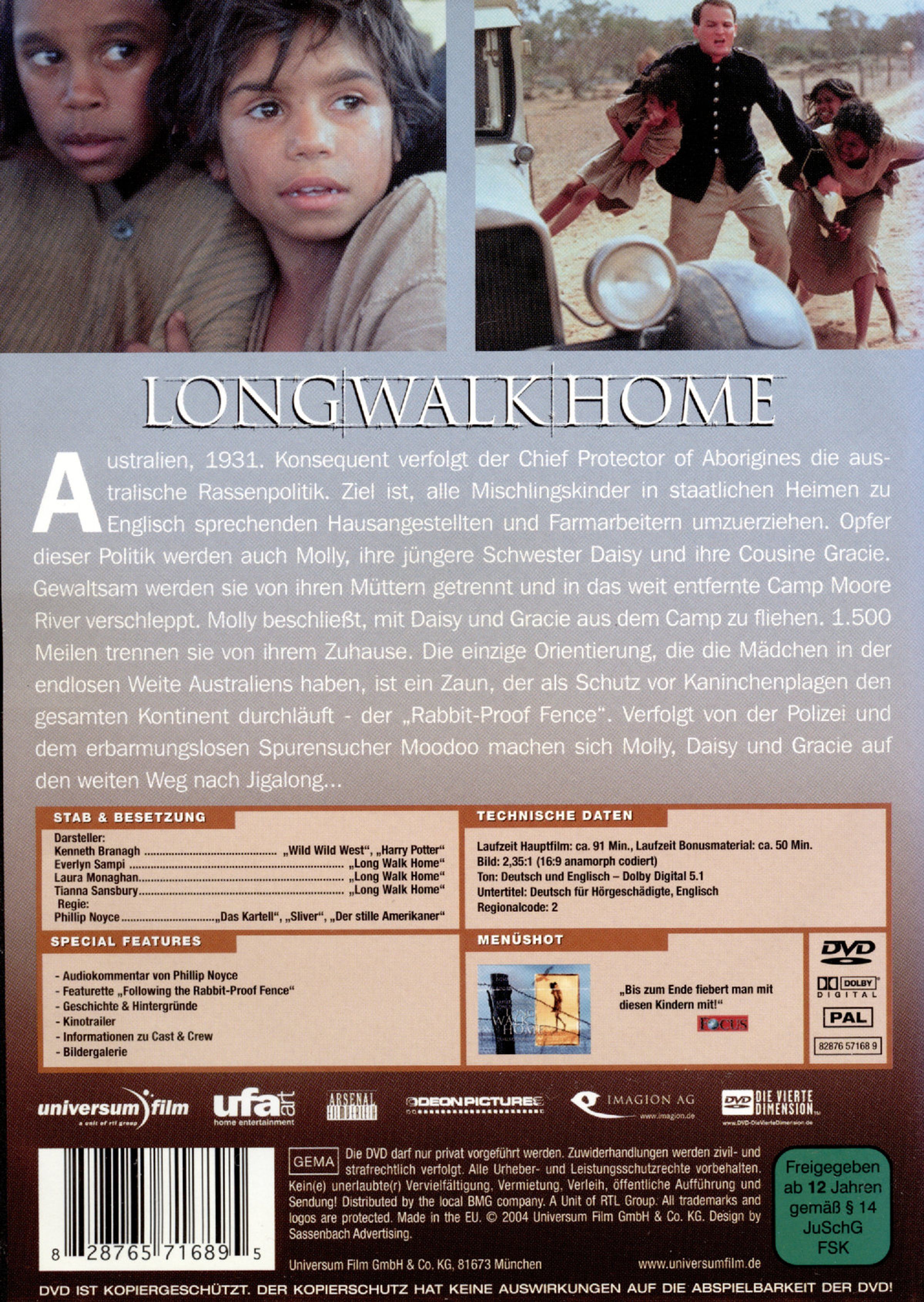 Australien, 1931, in einem Aborigine-Dorf namens Jigalong: Ein heranrasendes Auto zieht eine gewaltige Staubwolke hinter sich her. Plötzlich stürmen Männer aus dem Wagen. Wenige Augenblicke später verflüchtigt sich der Staub - und drei Kinder sind verschwunden. Gewaltsam haben die Männer die 14-jährige Molly, ihre achtjährige Schwester Daisy sowie deren zehnjährige Cousine Gracie aus ihren Familien gerissen. Ganz legal, im Namen der Regierung, denn die australische Rassenpolitik duldet keine Mischlingskinder. Oberster Sittenwächter ist der Eingeborenen-Beauftragte A. O. Neville. Tausende von Kindern lässt er mit Polizeigewalt aus ihrer Heimat verschleppen, um sie in zuchthausartigen Heimen zu einfachen Bediensteten für die weiße Oberschicht umzuerziehen - "für ein neues Leben in einer weißen Gesellschaft", wie Neville betont. Quer durch den Kontinent werden Molly, Daisy und Gracie in das fast 2.500 Kilometer entfernte Erziehungsheim Camp Moore River transportiert. Zwei Nächte halten es die Mädchen in ihrem Gefängnis aus. Dann wagen sie das Unmögliche: Sie treten die nahezu endlose Flucht nach Hause an. Dabei orientieren sie sich an dem großen Zaun, der den Kontinent zerteilt, um Kaninchen vom Farmland fernzuhalten, dem Rabbit-Proof Fence. Doch den müssen sie erst einmal finden. Monatelang sind Molly, Daisy und Gracie in der lebensfeindlichen Einöde auf sich gestellt - verfolgt vom unbarmherzigen Fährtensucher Moodoo. Die naturverbundene Lebensweise ihres Stammes hilft den Kindern, in der Wüste zu überleben. Doch überzeugt von seinen martialischen Erziehungsmethoden setzt Neville alles daran, die Mädchen wieder einzufangen...