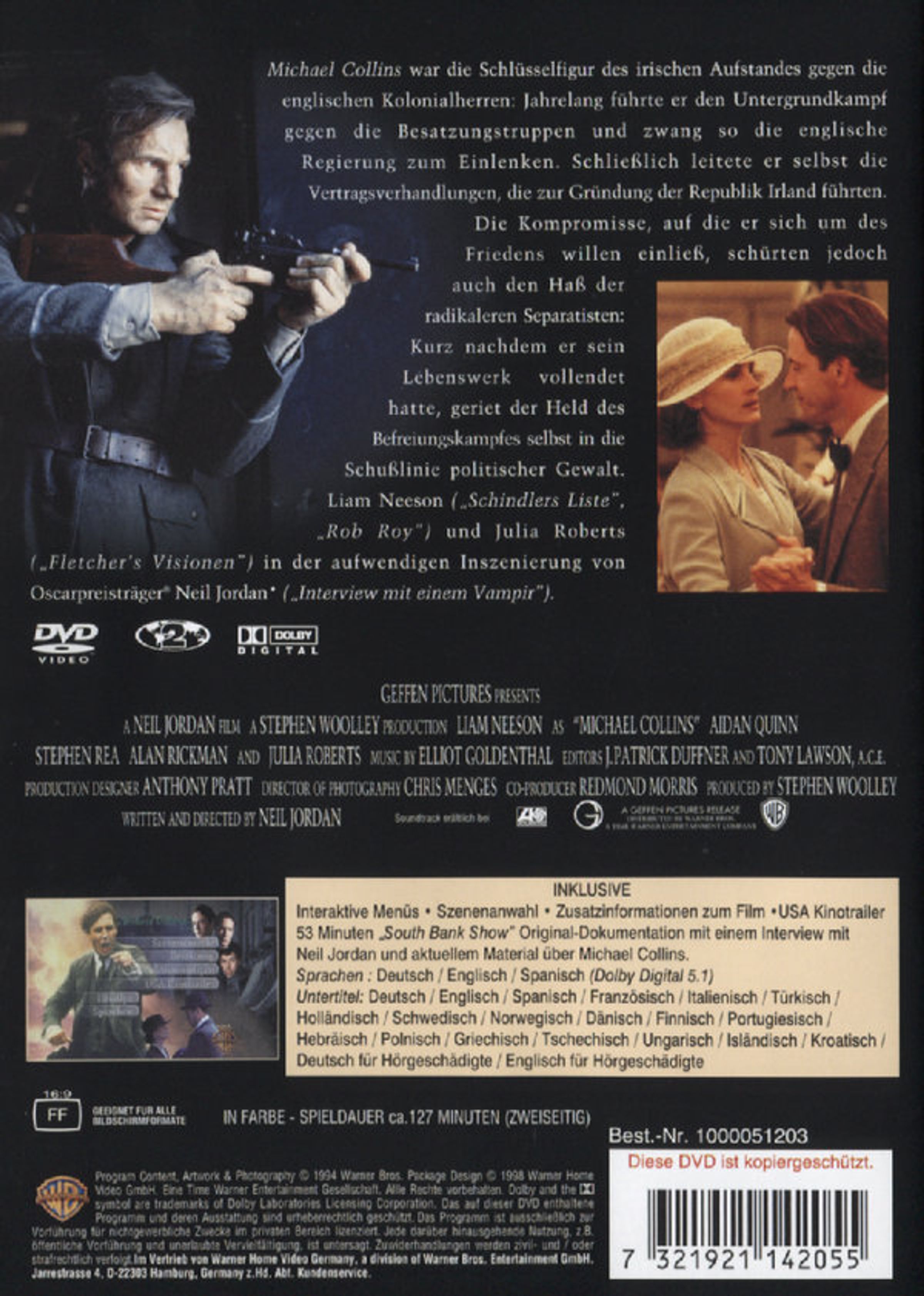 Michael Collins war die Schlüsselfigur des irischen Aufstandes gegen die englischen Kolonialherren: Jahrelang führte er den Untergrundkampf gegen die Besatzungstruppen und zwang so die englische Regierung zum Einlenken. Schließlich leitete er selbst die Vertragsverhandlungen, die zur Gründung der Republik Irland führten. Die Kompromisse, auf die er sich um des Friedens willen einließ, schürten jedoch den Haß der radikaleren Separatisten: Kurz nachdem er sein Lebenswerk vollendet hatte, geriet der Held des Befreiungskampfes selbst in die Schußlinie politischer Gewalt.
