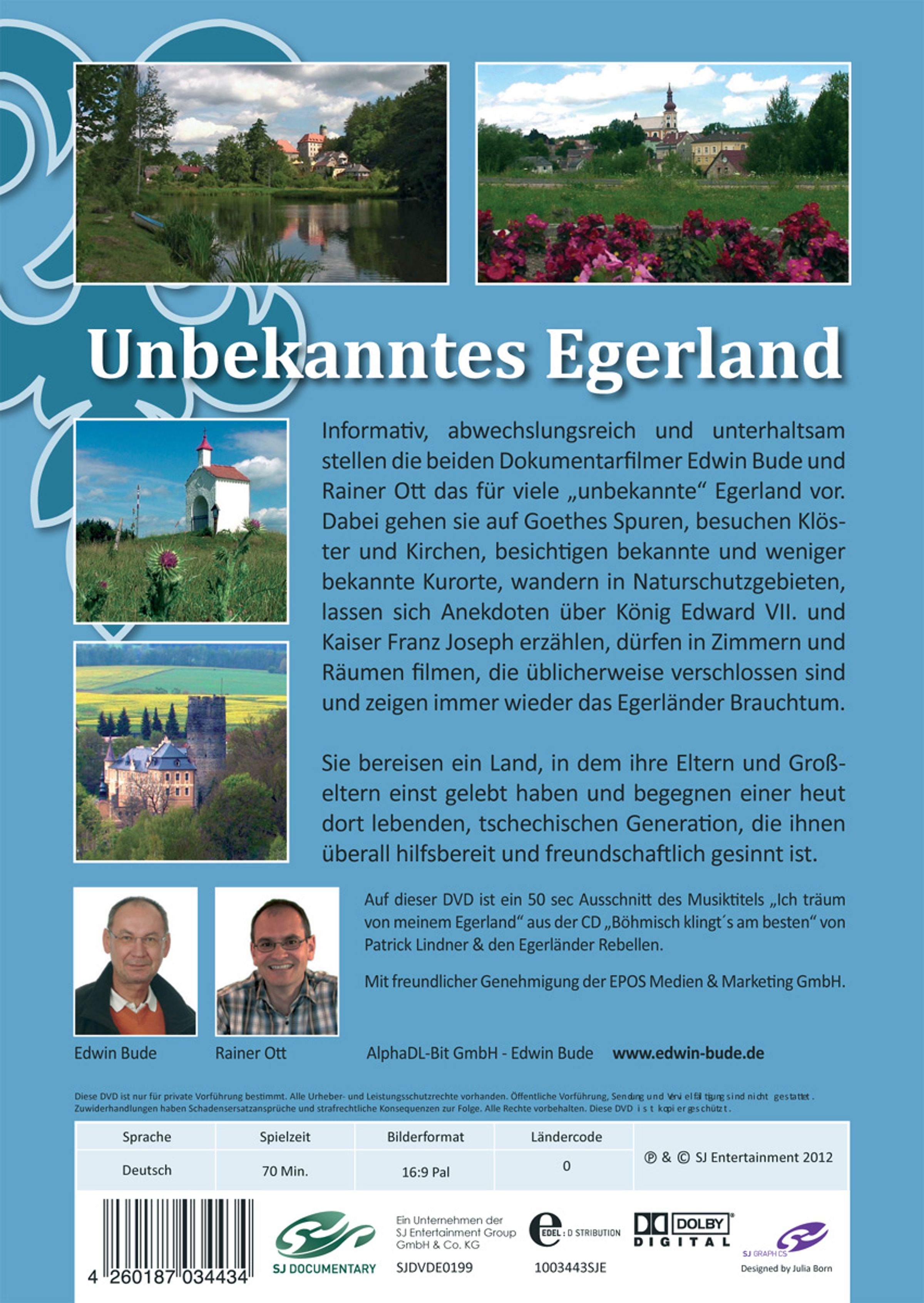 Informativ, abwechslungsreich und unterhaltsam stellen die beiden Dokumentarfilmer Edwin Bude und Reiner Ott das für viele „unbekannte“ Egerland vor. Dabei gehen sie auf Goethes Spuren, besuchen Klöster und Kirchen