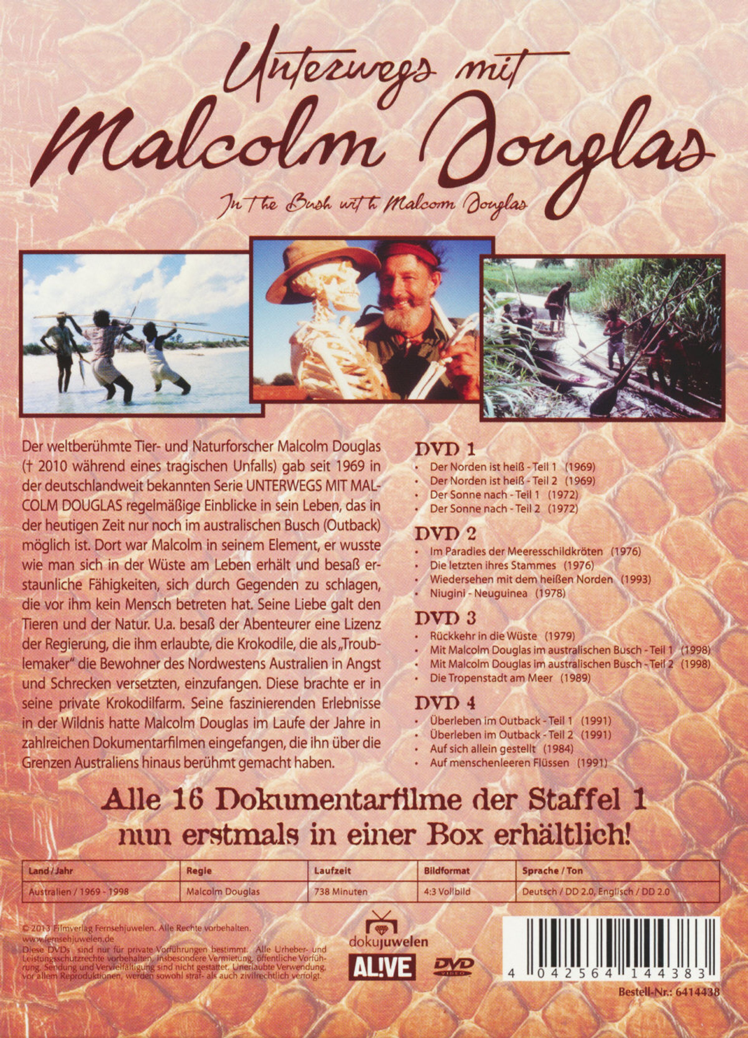 Seine faszinierenden Erlebnisse in der Wildnis hatte Malcolm Douglas im Laufe der Jahre in zahlreichen Dokumentarfilmen eingefangen, die ihn über die Grenzen Australiens hinaus berühmt gemacht haben. Alle Dokumentarfilme der Staffel 1 nun erstmals in einer Box erhältlich.