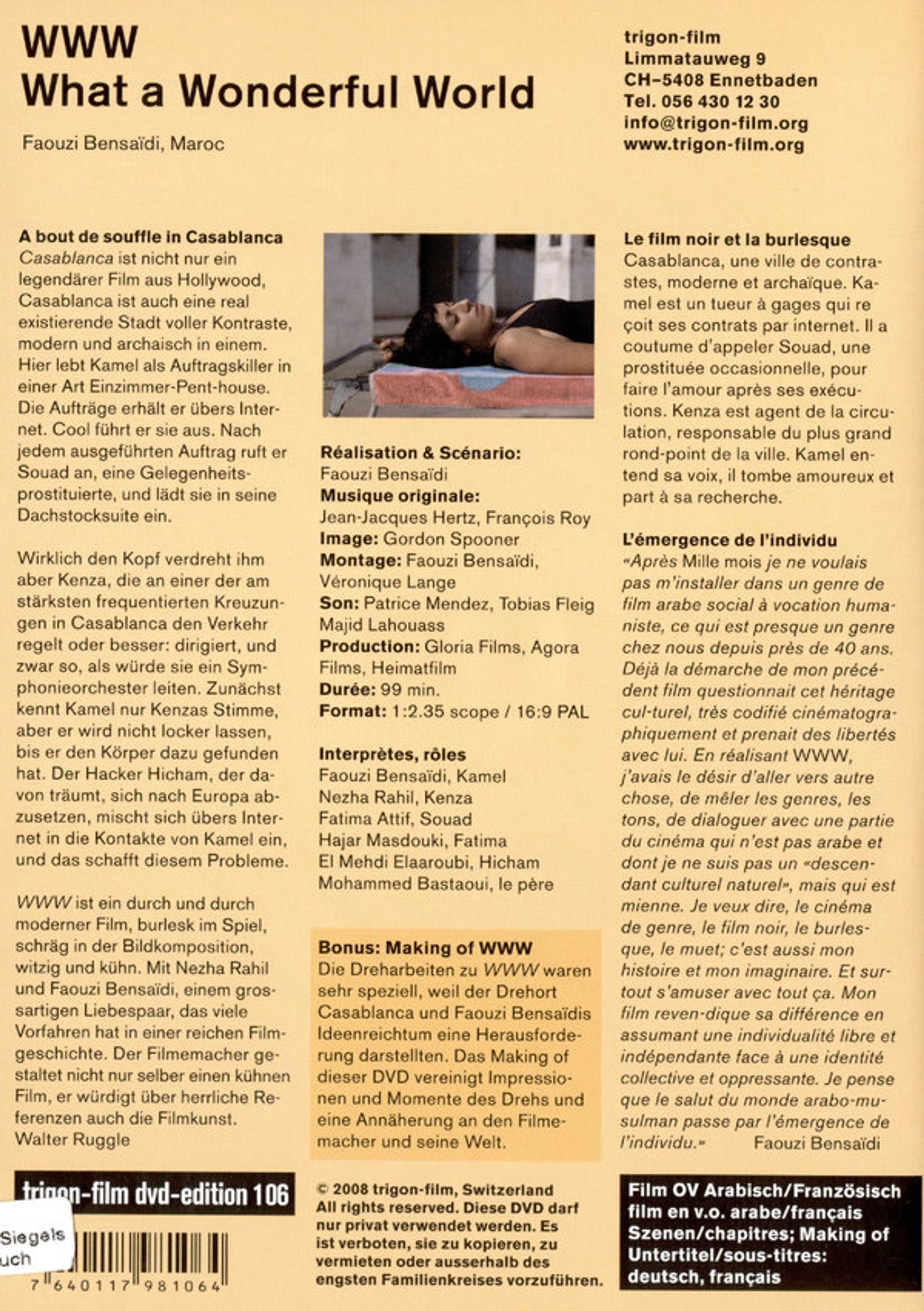 Und dann ist da noch der junge Hicham, der als Botenfahrer fuer seinen alten Vater sorgt und vom besseren Leben in Europa träumt. Um sein Ziel zu erreichen, hackt er sich illegal durch die Computernetze und kommt dabei Kamels kriminellen Internet-Verbindungen in die Quere.
