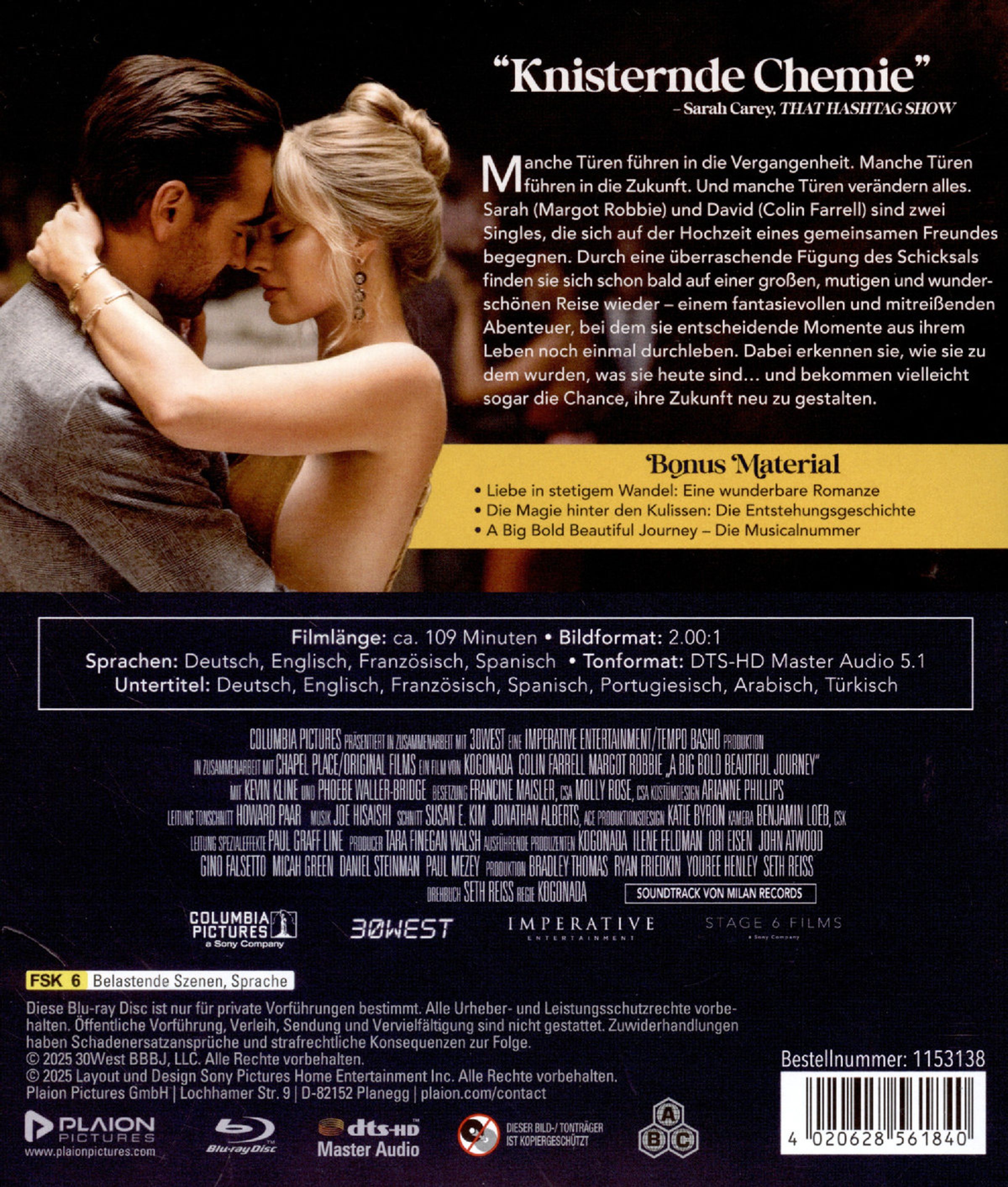 Manche Türen bringen dich zurück in deine Vergangenheit. Manche Türen führen dich in deine Zukunft. Und manche Türen verändern alles. Die Singles Sarah und David treffen sich zum ersten Mal auf einer Hochzeit und begeben sich anschließend, dank einer überraschenden Wendung des Schicksals, zusammen auf eine große, gewagte und grandiose Reise - auf ein witziges, fantastisches und mitreißendes Abenteuer, bei dem sie nicht nur gemeinsam in ihre jeweilige Vergangenheit eintauchen. Sie erkennen auch, wie sie dorthin gekommen sind, wo sie heute sind und dass sie vielleicht eine Chance erhalten haben, ihre Zukunft zu verändern.