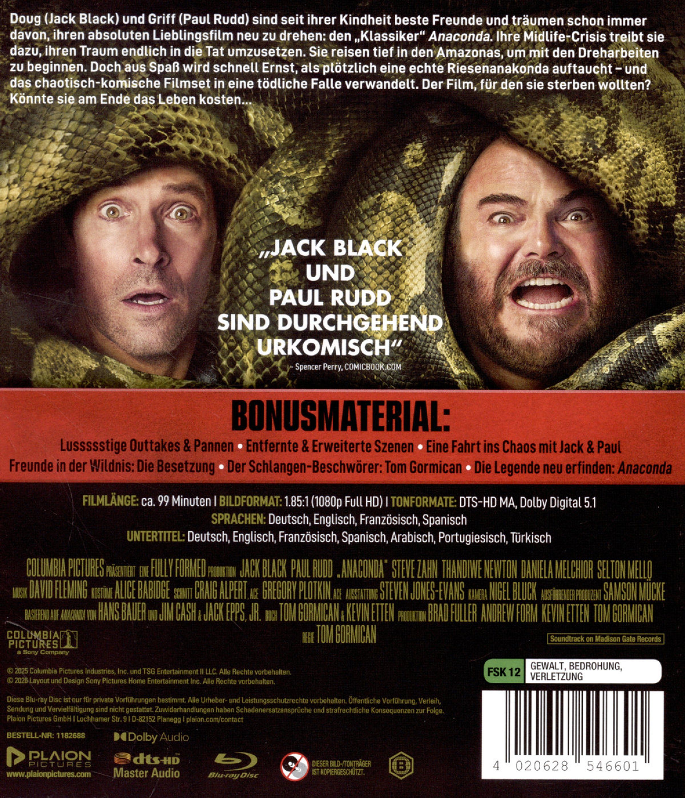 Doug und Griff sind seit ihrer Kindheit beste Freunde und träumen schon immer davon, ihren absoluten Lieblingsfilm neu zu drehen: den »Klassiker« Anaconda. Ihre Midlife-Crisis treibt sie dazu, ihren Traum endlich in die Tat umzusetzen. Sie reisen tief in den Amazonas, um mit den Dreharbeiten zu beginnen. Doch aus Spaß wird schnell Ernst, als plötzlich eine echte Riesenanaconda auftaucht - und das chaotisch-komische Filmset in eine tödliche Falle verwandelt. Der Film, für den sie sterben wollten? Könnte sie am Ende das Leben kosten...
