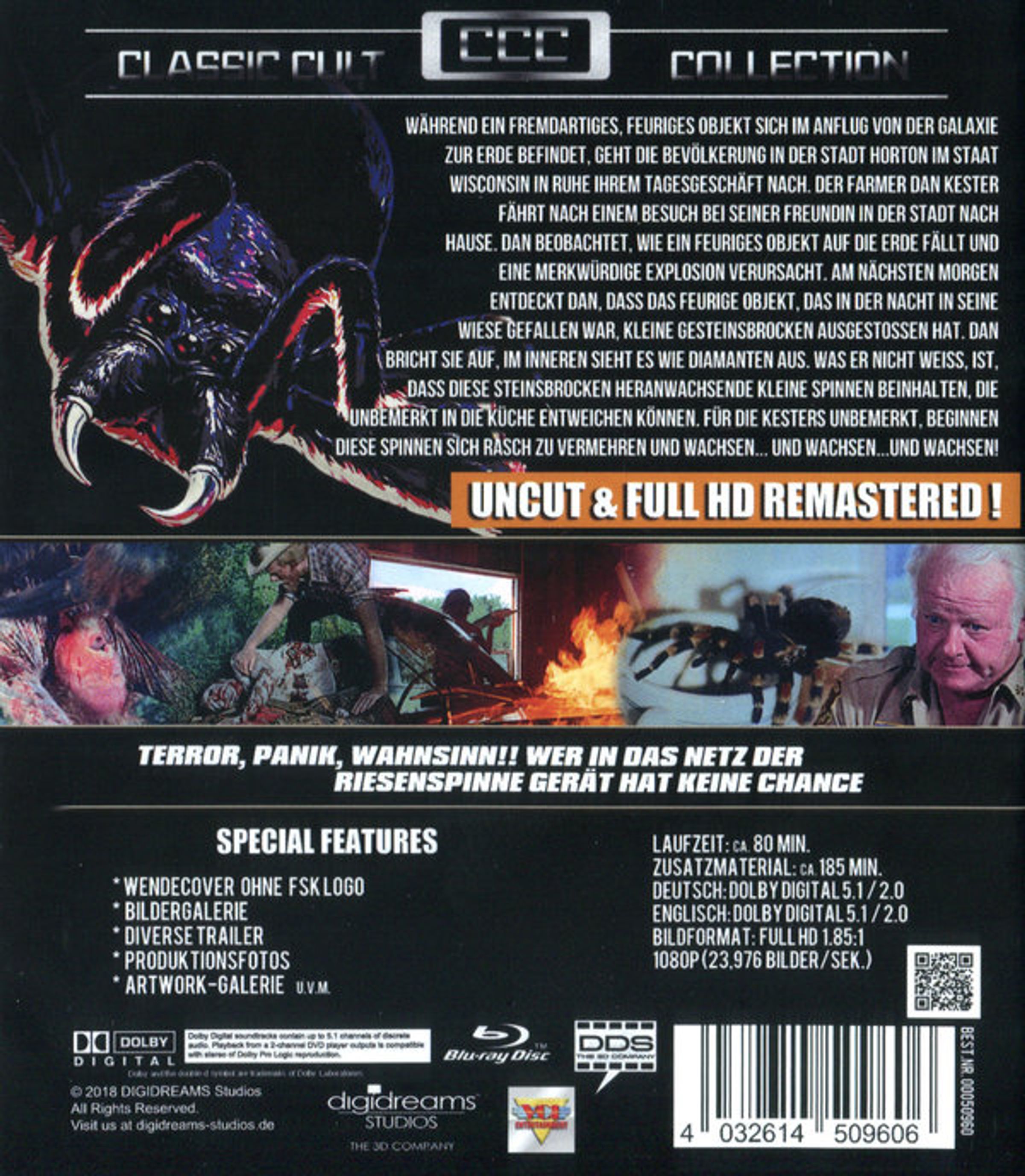 Während ein fremdartiges, feuriges Objekt sich im Anflug von der Galaxie zur Erde befindet, geht die Bevölkerung in der Stadt Horton im Staat Wisconsin in Ruhe ihrem Tagesgeschäft nach. Der Farmer Dan Kester fährt nach einem Besuch bei seiner Freundin in der Stadt nach Hause. Dan beobachtet, wie ein feuriges Objekt auf die Erde fällt und eine merkwürdige Explosion verursacht. Am nächsten Morgen entdeckt Dan, daß das feurige Objekt, das in der Nacht in seine Wiese gefallen war, kleine Gesteinsbrocken ausgestoßen hat. Dan bricht sie auf, im Inneren sieht es wie Diamanten aus. Was er nicht weiß, ist, daß diese Steinsbrocken heranwachsende kleine Spinnen beinhalten, die unbemerkt in die Küche entweichen können. Für die Kesters unbemerkt, beginnen diese Spinnen sich rasch zu vermehren und wachsen...und wachsen...und wachsen!