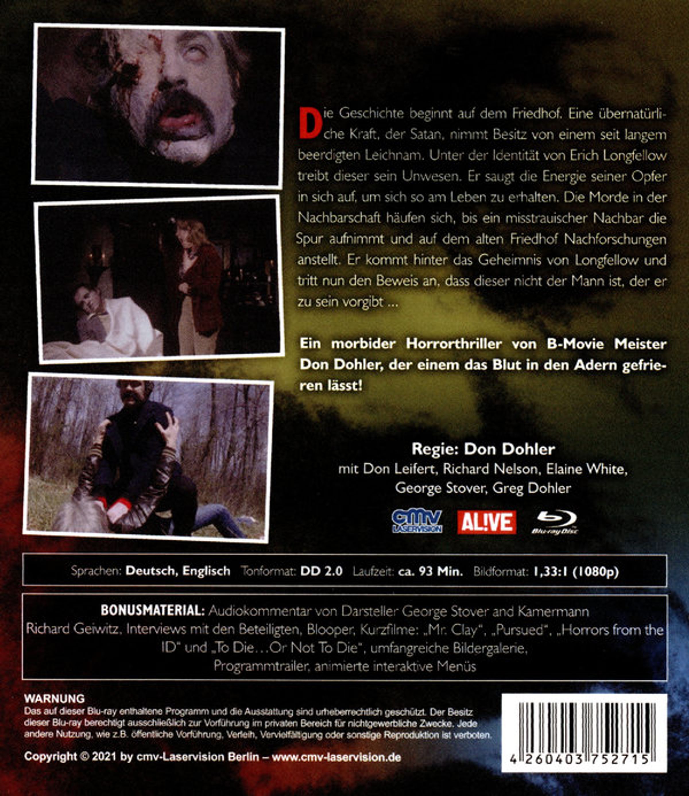 - Audiokommentar von Darsteller George Stover and Kamermann Richard Geiwitz; Interviews mit den Beteiligten; Blooper; Kurzfilme: »Mr. Clay«; »Pursued«; »Horrors from the ID« und »To Die...Or Not To Die«