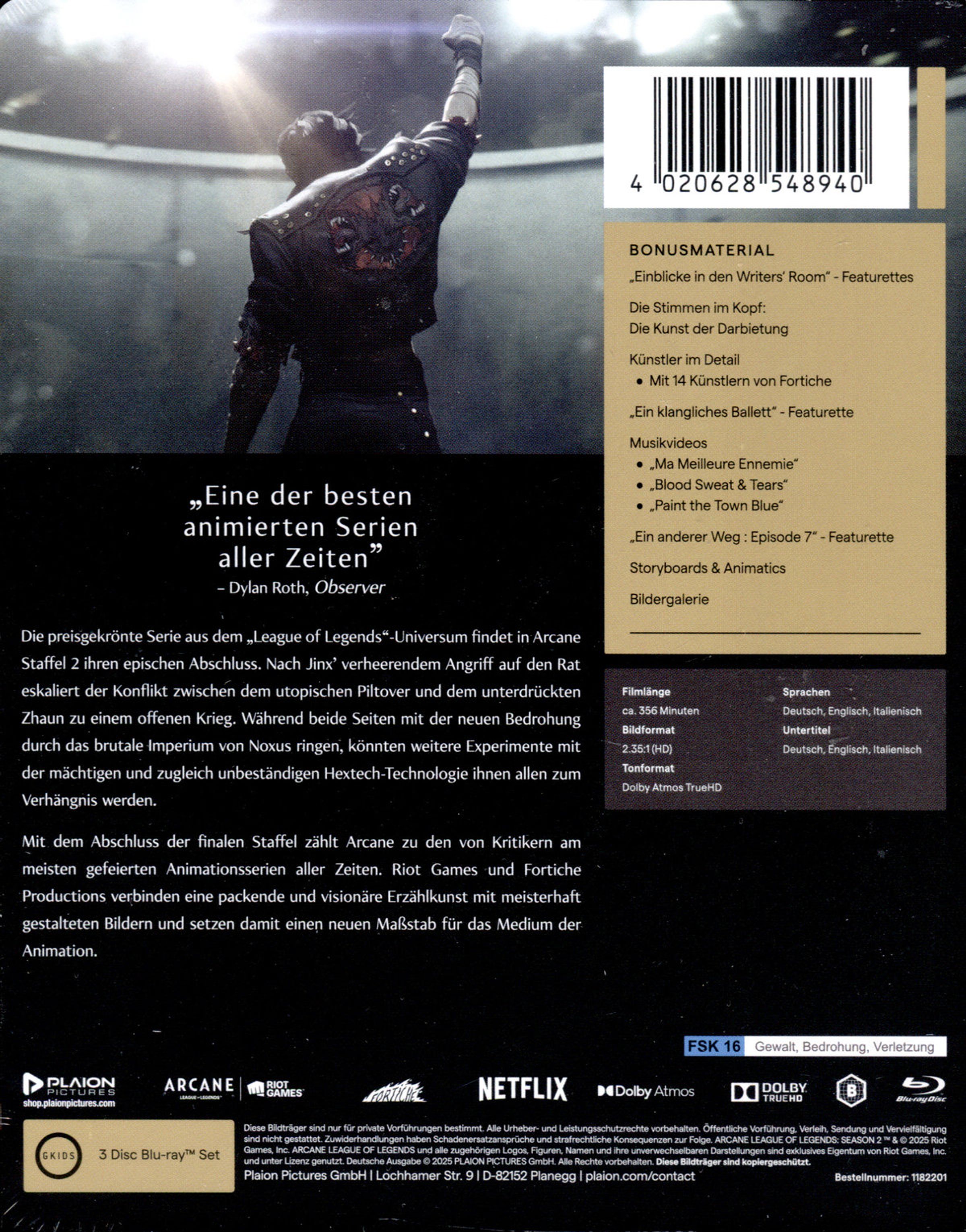 ARCANE kehrt für sein spektakuläres Finale zurück. Die mit 4 Primetime Emmys ausgezeichnete Saga , die Millionen Fans weltweit in ihren Bann zog, steuert auf ihren unausweichlichen Höhepunkt zu. Mit bahnbrechender Animation und einer herzzerreißenden Geschichte wird das Schicksal von Vi und Jinx endgültig besiegelt.