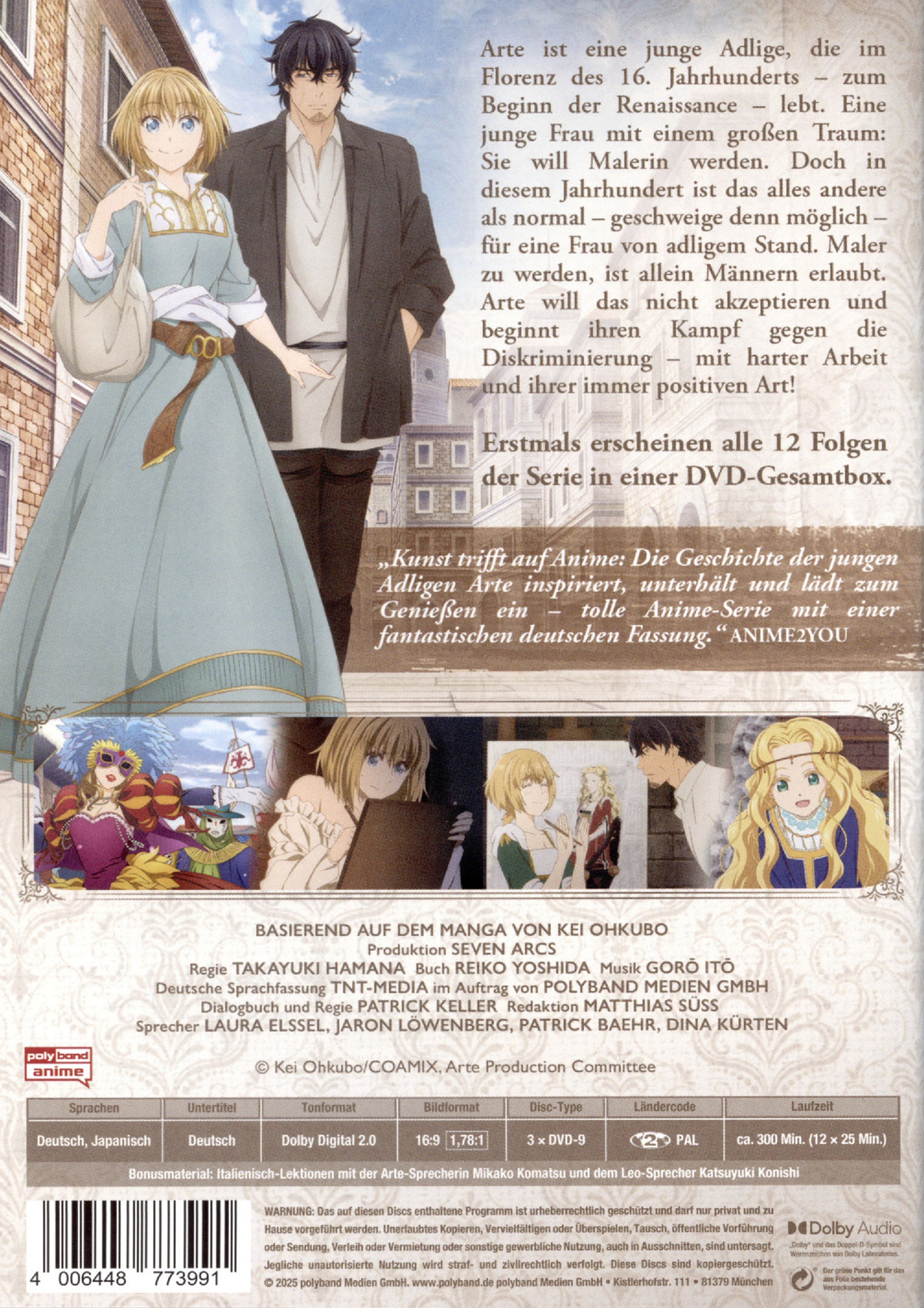 »Kunst trifft auf Anime: Die Geschichte der jungen Adligen Arte inspiriert, unterhält und lädt zum Genießen ein - tolle Anime-Serie mit einer fantastischen deutschen Fassung.« (ANIME2YOU)
