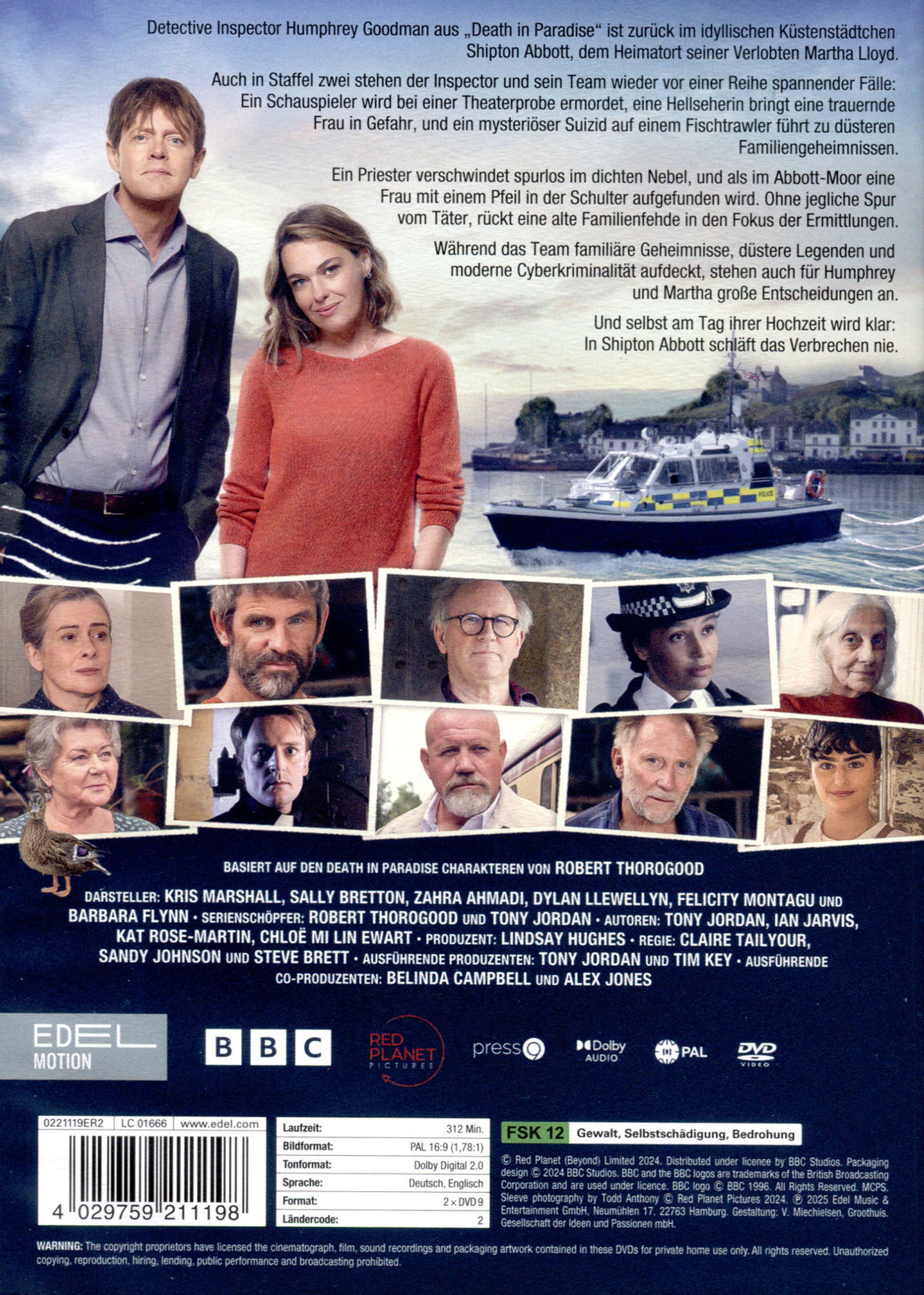 Auch in Staffel zwei stehen der Inspector und sein Team wieder vor einer Reihe spannender Fälle: Ein Schauspieler wird bei einer Theaterprobe ermordet, eine Hellseherin bringt eine trauernde Frau in Gefahr und ein mysteriöser Suizid auf einem Fischtrawler führt zu düsteren Familiengeheimnissen. Ein Priester verschwindet spurlos im dichten Nebel und als im Abbott-Moor eine Frau mit einem Pfeil in der Schulter aufgefunden wird - ohne jegliche Spur vom Täter - rückt eine alte Familienfehde in den Fokus der Ermittlungen. Während das Team familiäre Geheimnisse, düstere Legenden und moderne Cyberkriminalität aufdeckt, stehen auch für Humphrey und Martha große Entscheidungen an. Und selbst am Tag ihrer Hochzeit wird klar: In Shipton Abbott schläft das Verbrechen nie.