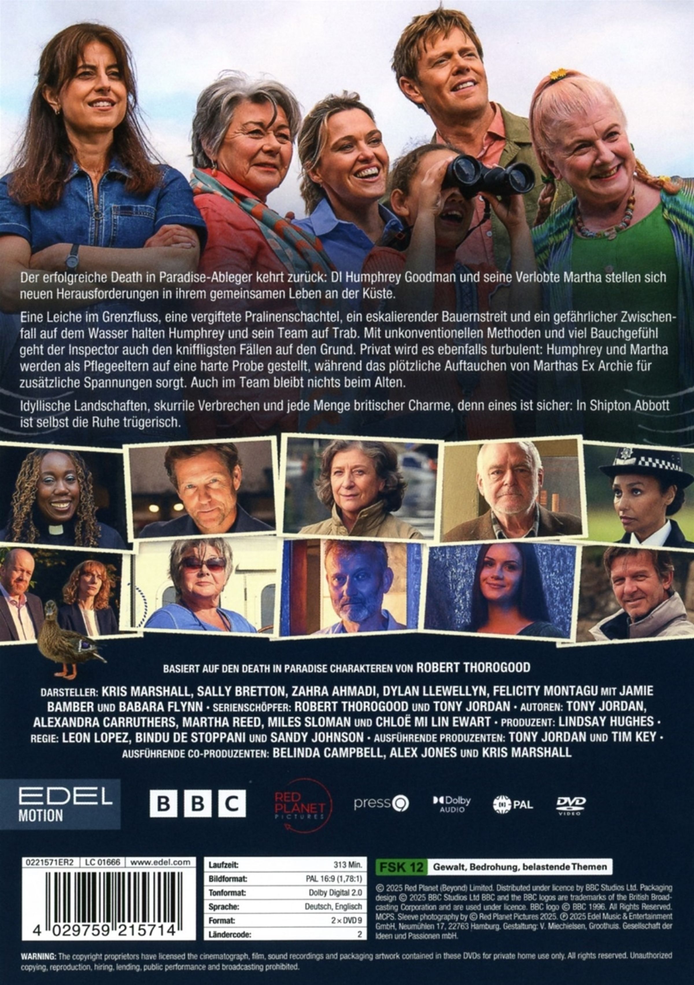 Der erfolgreiche Death in Paradise-Ableger kehrt zurück: DI Humphrey Goodman und seine Verlobte Martha stellen sich neuen Herausforderungen in ihrem gemeinsamen Leben an der Küste. Eine Leiche im Grenzfluss, eine vergiftete Pralinenschachtel, ein eskalierender Bauernstreit und ein gefährlicher Zwischenfall auf dem Wasser halten Humphrey und sein Team auf Trab. Mit unkonventionellen Methoden und viel Bauchgefühl geht der Inspector auch den kniffligsten Fällen auf den Grund. Privat wird es ebenfalls turbulent: Humphrey und Martha stellen sich neuen Herausforderungen als Pflegeeltern, während das plötzliche Auftauchen von Marthas Ex Archie für zusätzliche Spannungen sorgt. Auch im Team bleibt nichts beim Alten.