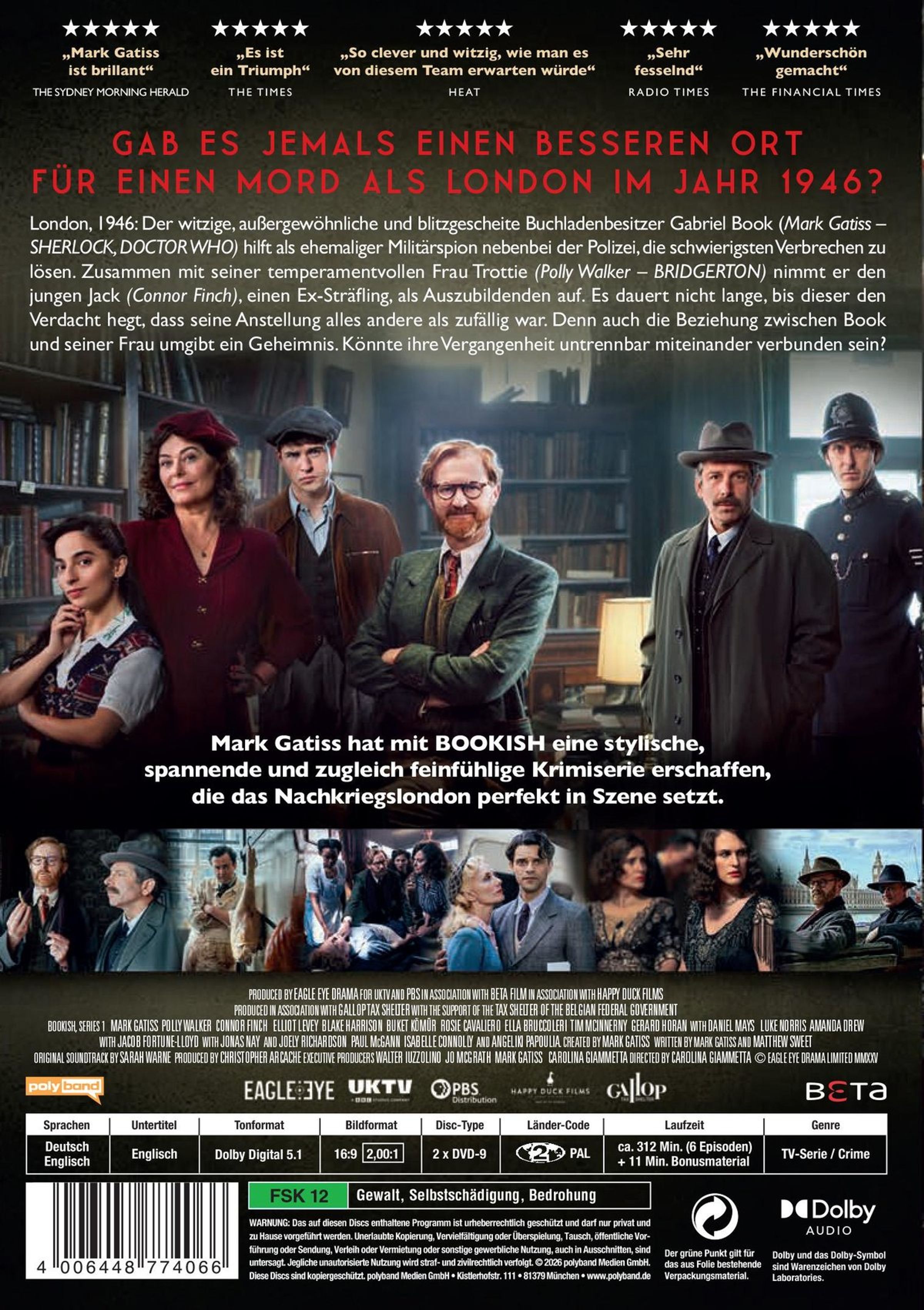 Mark Gatiss (kreativer Kopf und Darsteller der BBC-Hitserie »Sherlock«) hat mit Bookish eine stylische, spannende und zugleich feinfühlige Krimiserie erschaffen, die das Nachkriegslondon perfekt in Szene setzt.