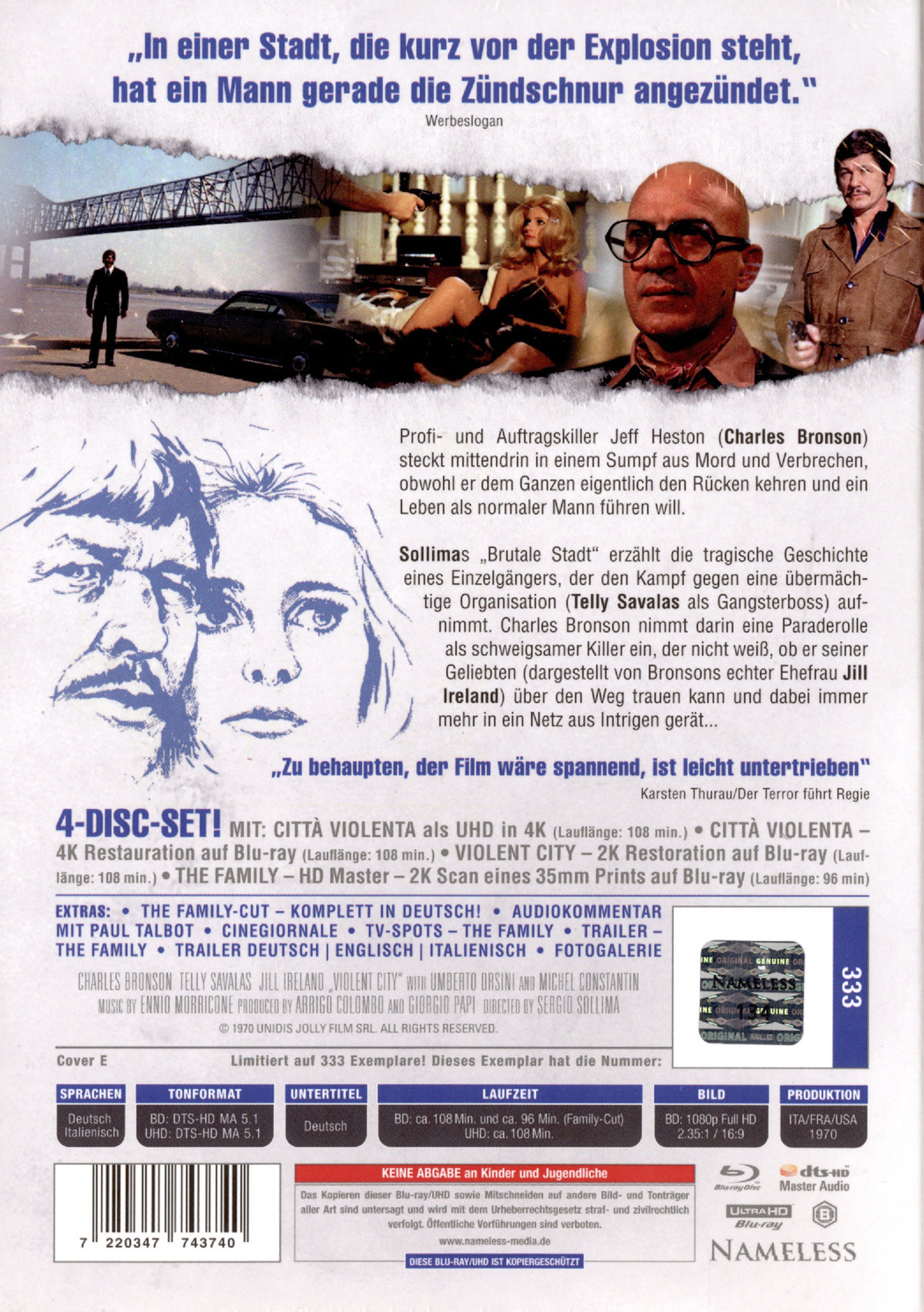 Sollimas »Brutale Stadt« erzählt die tragische Geschichte eines Einzelgängers, der den Kampf gegen eine übermächtige Organisation aufnimmt. Charles Bronson nimmt darin eine Paraderolle als schweigsamer Killer ein, der nicht weiß, ob er seiner Geliebten über den Weg trauen kann und dabei immer mehr in ein