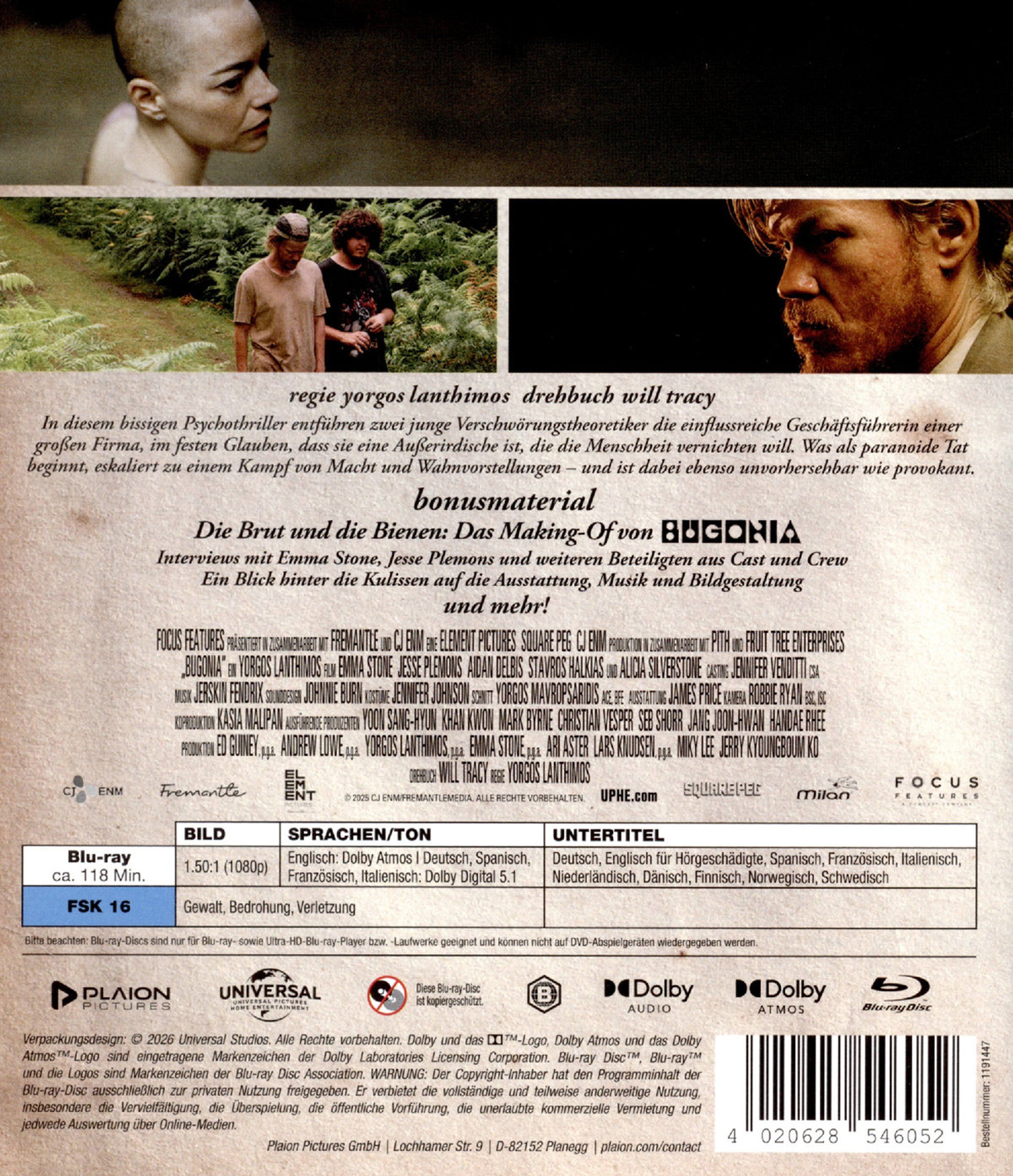 Nach seinem mit vier Oscars® ausgezeichneten Meisterwerk POOR THINGS bringt Ausnahmeregisseur Yorgos Lanthimos mit seinem neuesten Geniestreich BUGONIA nun eine skurrile Sci-Fi-Komödie auf die große Leinwand.
