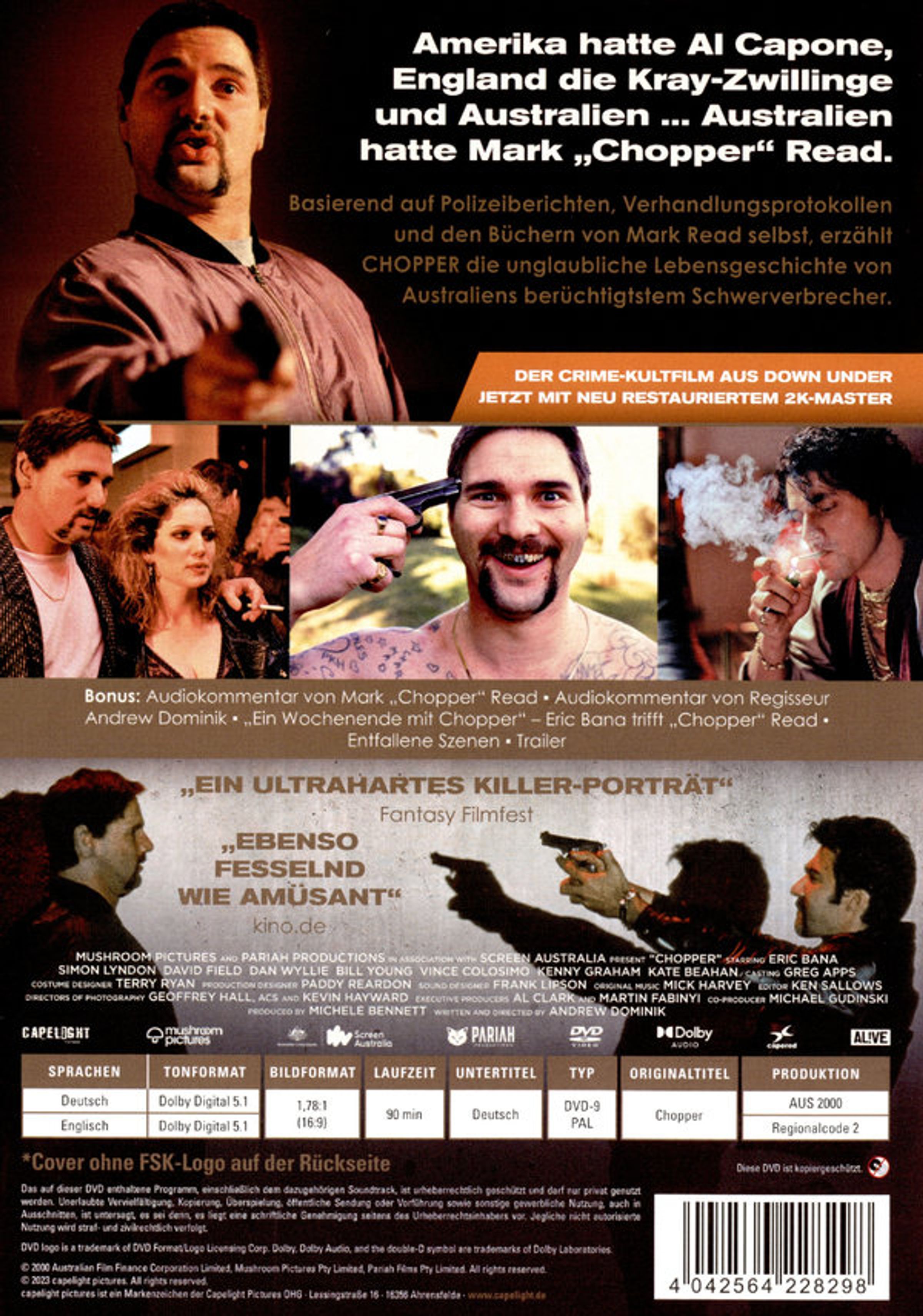 Amerika hatte Al Capone, England die Kray-Zwillinge und Australien ... Australien hatte Mark Chopper Read. Basierend auf Polizeiberichten, Verhandlungsprotokollen und den Büchern von Mark Read selbst, erzählt CHOPPER die unglaubliche Lebensgeschichte von Australiens berüchtigtstem Schwerverbrecher.