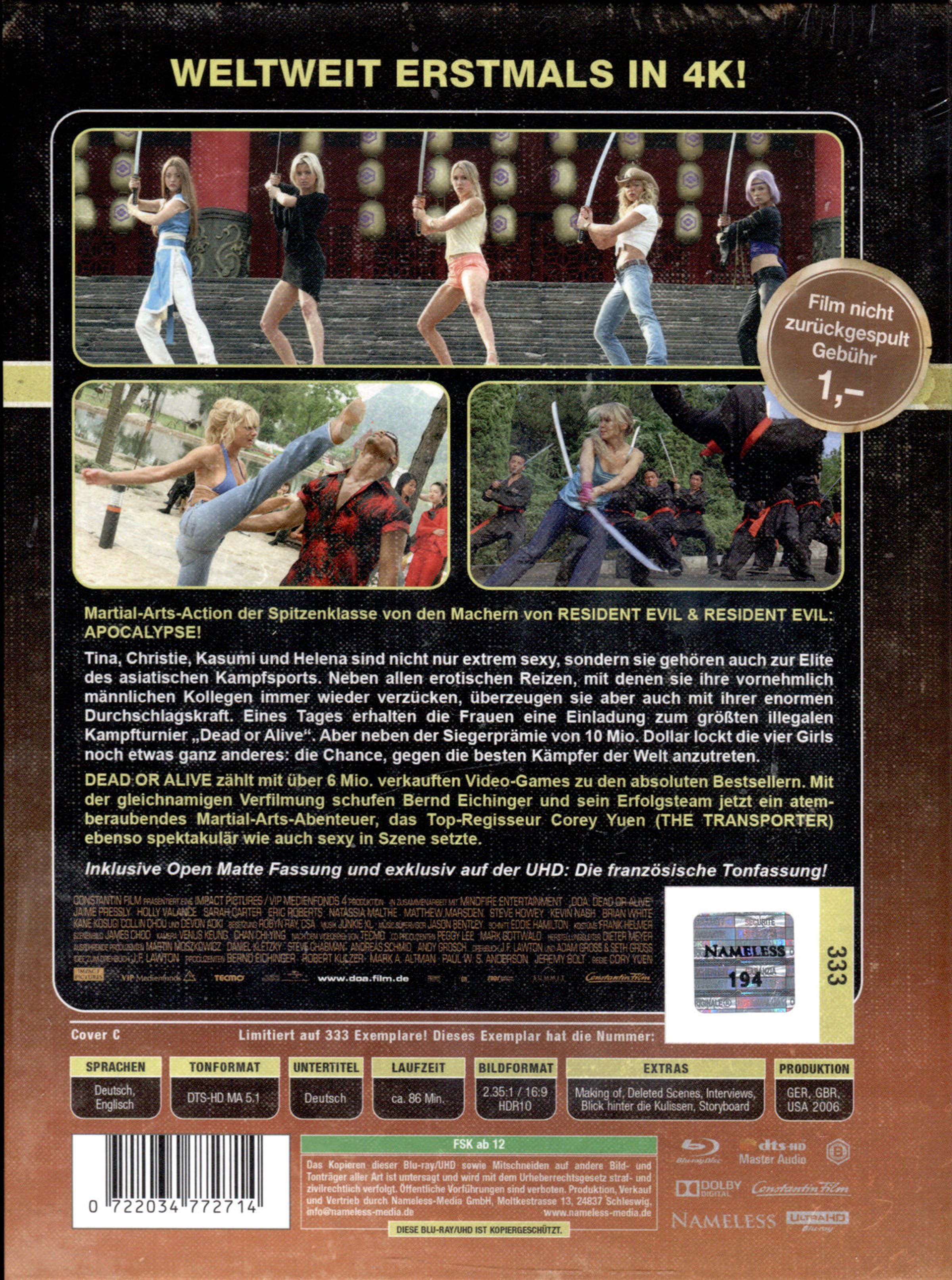DEAD OR ALIVE zählt mit über 6 Mio. verkauften Video-Games zu den absoluten Bestsellern. Mit der gleichnamigen Verfilmung schufen Bernd Eichinger und sein Erfolgsteam jetzt ein atemberaubendes Martial-Arts-Abenteuer, das Top-Regisseur Corey Yuen ebenso spektakulär wie auch sexy in Szene setzte.