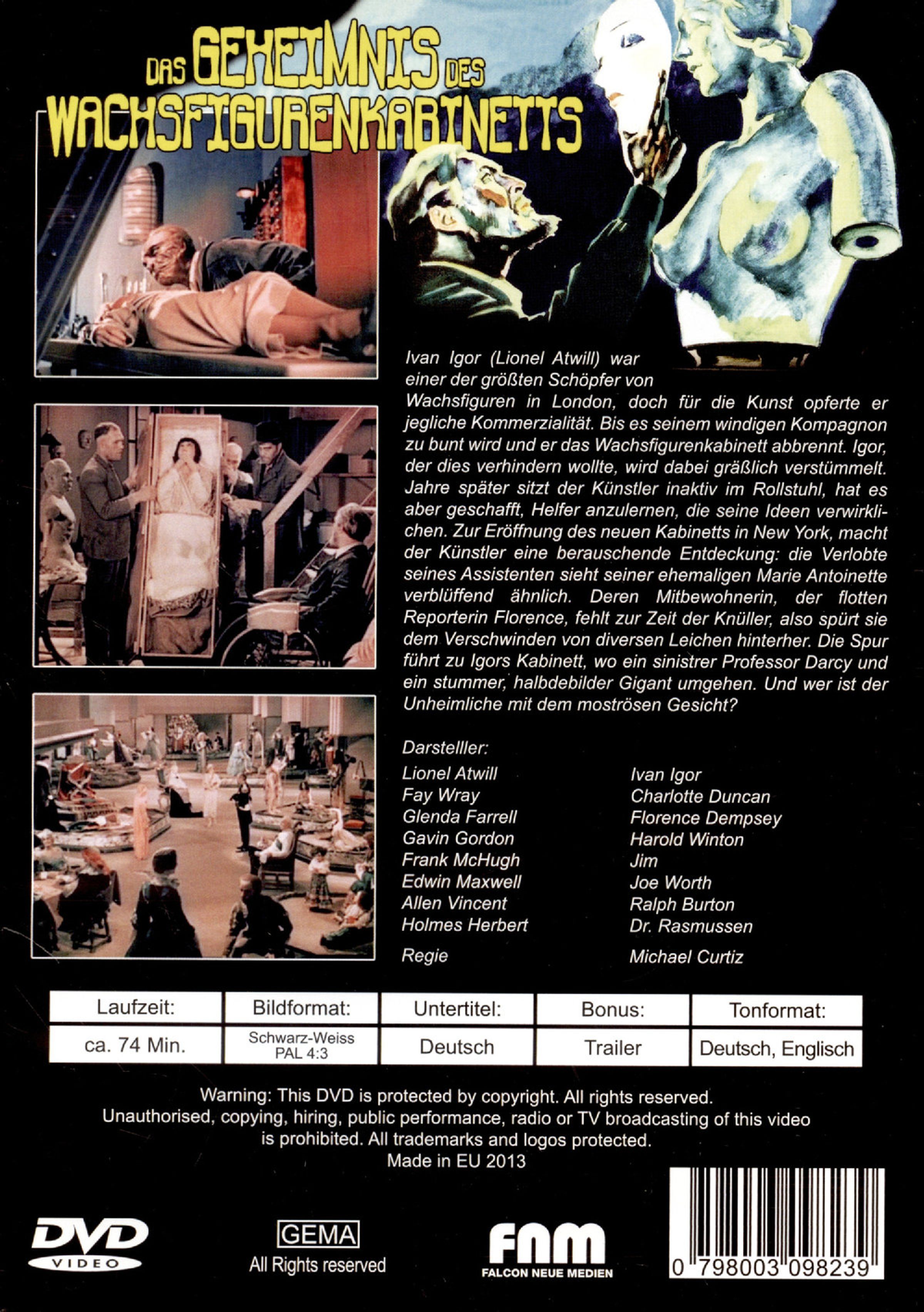 Ivan Igor war einer der größten Schöpfer von Wachsfiguren in London, doch für die Kunst opferte er jegliche Kommerzialität. Bis es seinem windigen Kompagnon zu bunt wird und er das Wachsfigurenkabinett abbrennt. Igor, der dies verhindern wollte, wird dabei gräßlich verstümmelt. Jahre später sitzt der Künstler inaktiv im Rollstuhl, hat es aber geschafft, Helfer anzulernen, die seine Ideen verwirklichen. Zur Eröffnung des neuen Kabinetts in New York, macht der Künstler eine berauschende Entdeckung: die Verlobte seines Assistenten sieht seiner ehemaligen Marie Antoinette verblüffend ähnlich. Deren Mitbewohnerin, der flotten Reporterin Florence, fehlt zur Zeit der Knüller, also spürt sie dem Verschwinden von diversen Leichen hinterher. Die Spur führt zu Igors Kabinett, wo ein sinistrer Professor Darcy und ein stummer, halbdebilder Gigant umgehen. Und wer ist der Unheimliche mit dem moströsen Gesicht?