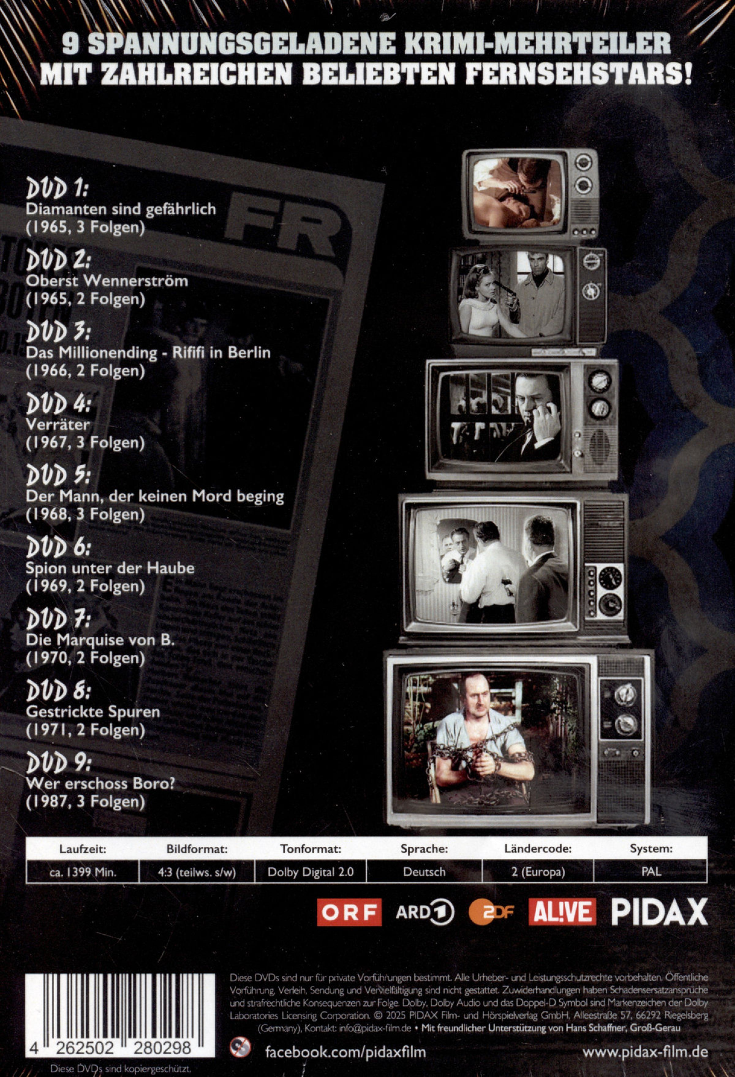 Entdecken Sie neun mitreißende Krimi-Mehrteiler aus den 60er- bis 80er-Jahren, die zu echten Straßenfegern wurden. Die Box vereint packende Fälle, zeitlosen Stil und echte Schnappschüsse der Vergangenheit - mit einem Erinnerungsfund voller großer Namen: »Winnetou«-Darsteller Pierre Brice, Erik Ode, Götz George und vielen anderen Stars der deutschen Fernsehgeschichte. Eine formidable Sammlung für Liebhaber klassischer Krimis und Retro-Atmosphäre.