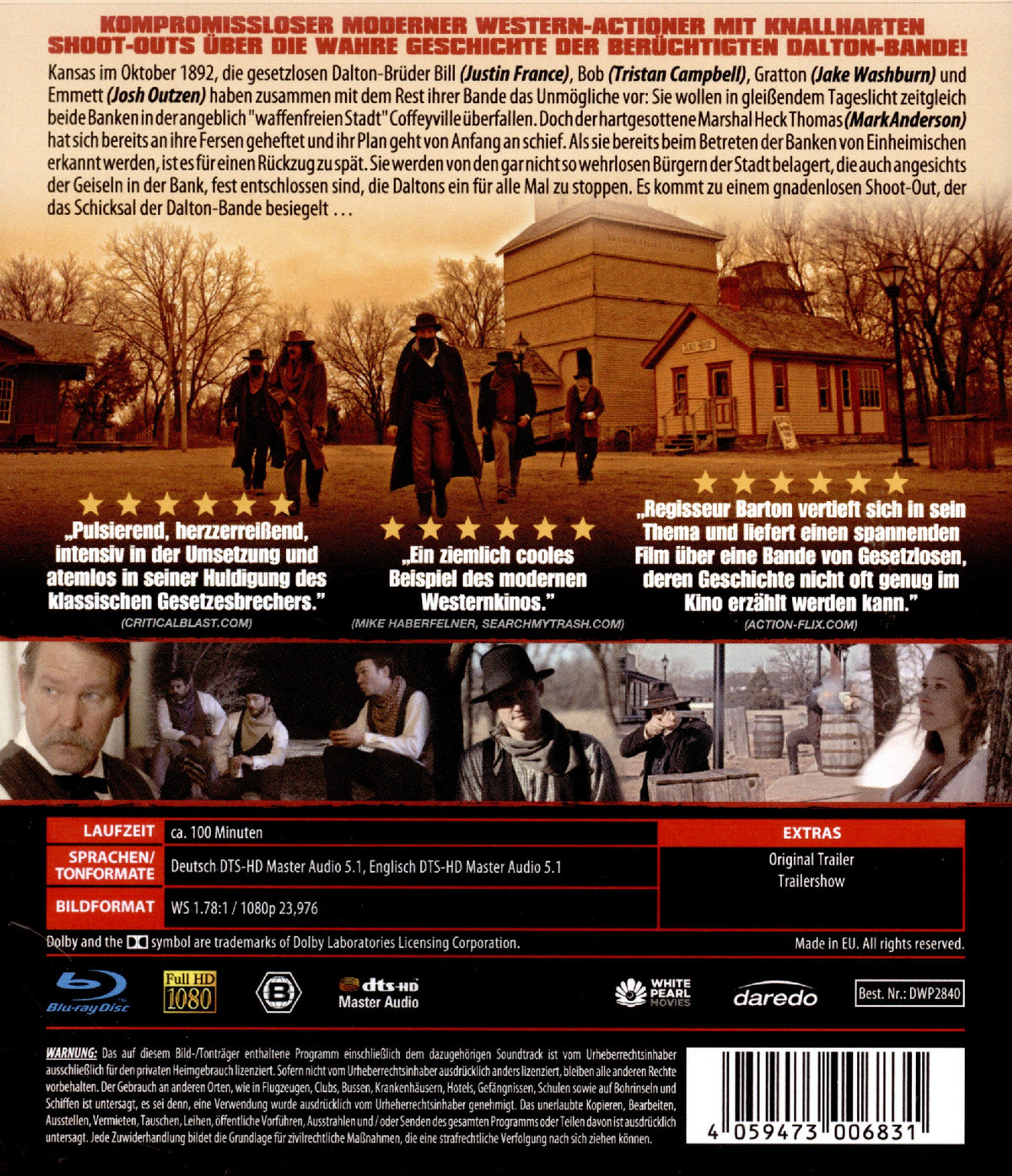 Kansas im Oktober 1892, die gesetzlosen Dalton-Brüder Bill. Bob, Gratton und Emmett haben zusammen mit dem Rest ihrer Bande das Unmögliche vor: Sie wollen in gleißendem Tageslicht zeitgleich beide Banken in der angeblich »waffenfreien Stadt« Coffeyville überfallen. Doch der hartgesottene Marshal Heck Thomas hat sich bereits an ihre Fersen geheftet und ihr Plan geht von Anfang an schief. Als sie bereits beim Betreten der Banken von Einheimischen erkannt werden, ist es für einen Rückzug zu spät. Sie werden von den gar nicht so wehrlosen Bürgern der Stadt belagert, die auch angesichts der Geiseln in der Bank, fest entschlossen sind, die Daltons ein für alle Mal zu stoppen. Es kommt zu einem gnadenlosen Shoot-Out, der das Schicksal der Dalton-Bande besiegelt...