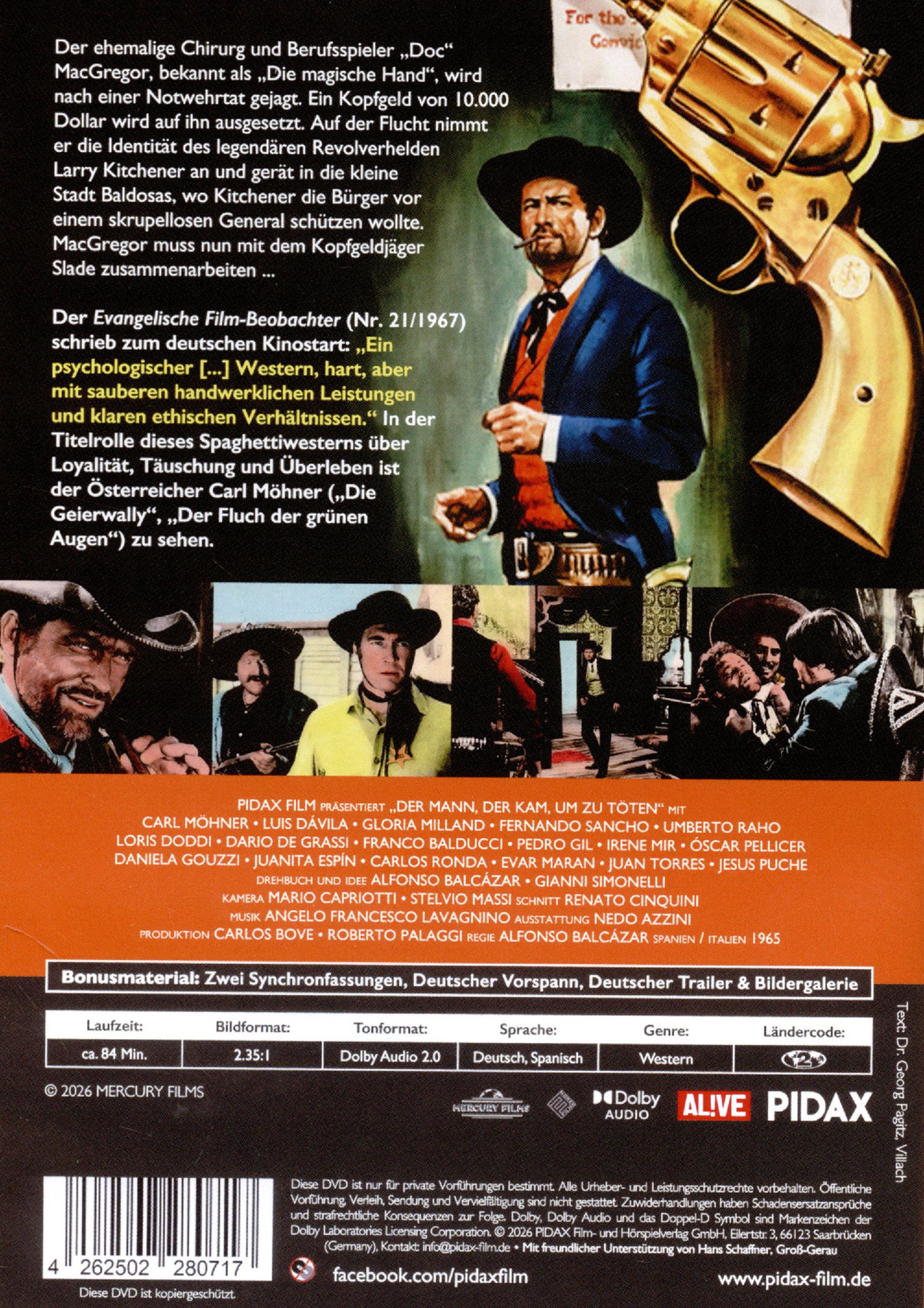 Der ehemalige Chirurg und Berufsspieler 'Doc' MacGregor, bekannt als »Die magische Hand«, wird nach einer Notwehrtat gejagt. Ein Kopfgeld von 10.000 Dollar wird auf ihn ausgesetzt. Auf der Flucht nimmt er die Identität des legendären Revolverhelden Larry Kitchener an und gerät in die kleine Stadt Baldosas, wo Kitchener die Bürger vor einem skrupellosen General schützen wollte. MacGregor muss nun mit dem Kopfgeldjäger Slade zusammenarbeiten ...