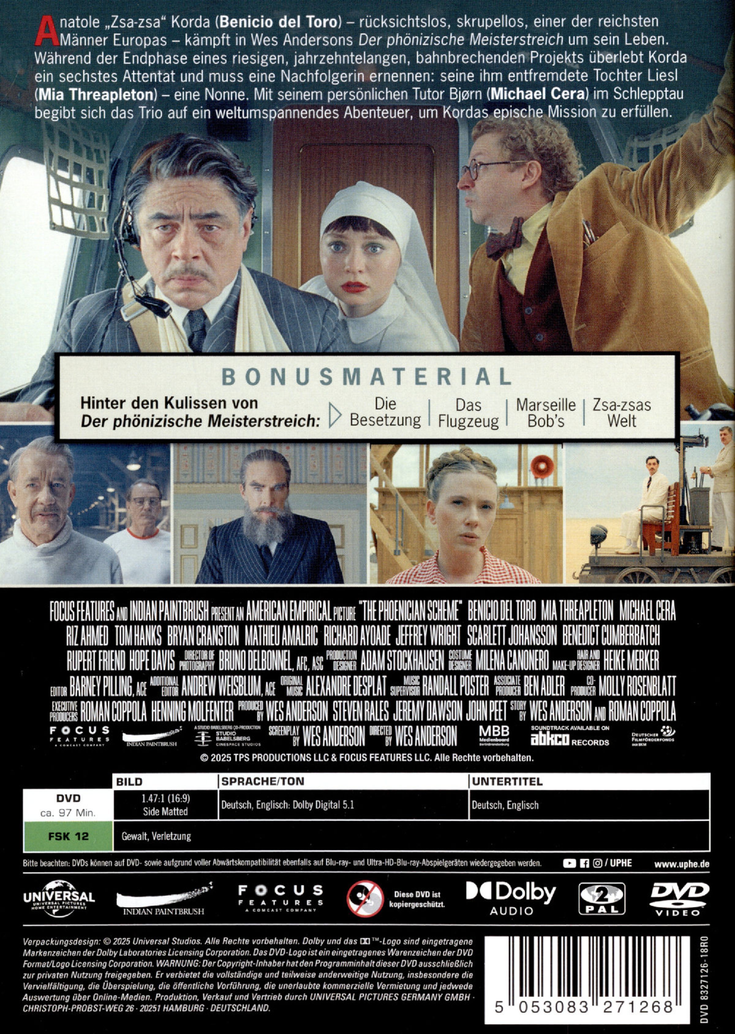 Die Geschichte einer Familie und eines Familienunternehmens. In den Hauptrollen: Benicio del Toro als Zsa-zsa Korda, einer der reichsten Männer Europas, Mia Threapleton als Schwester Liesl, seine Tochter/eine Nonne, Michael Cera als Bjorn Lund, der Familien-Tutor. Mit Tom Hanks, Bryan Cranston, Riz Ahmed, Mathieu Amalric, Jeffrey Wright, Scarlett Johansson, Richard Ayoade, Rupert Friend, Hope Davis und Benedict Cumberbatch.