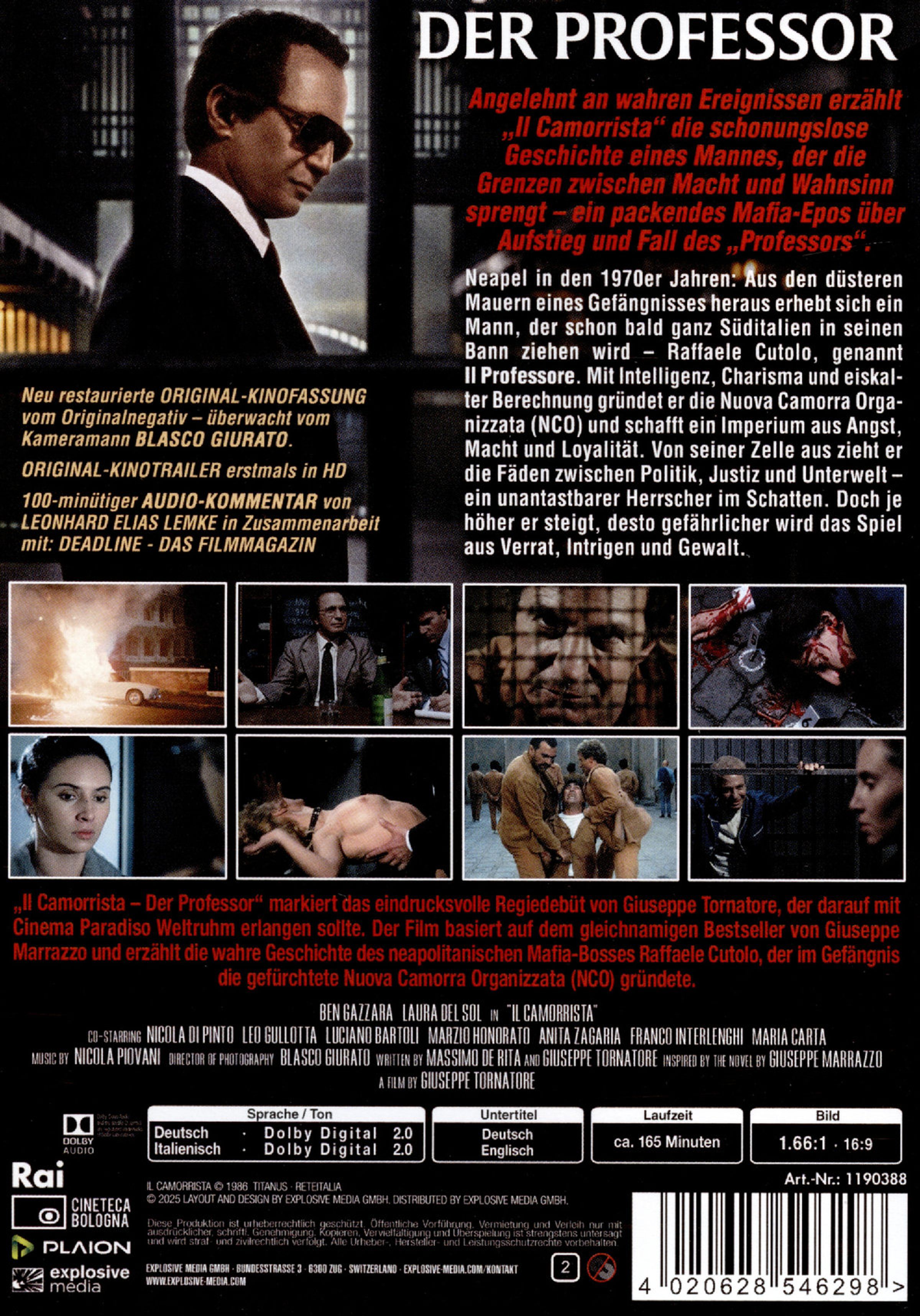 Giuseppe Tornatores Regiedebüt Der Professor ist ein eindrucksvoller, düsterer Mafiafilm, der mit stilistischer Raffinesse und erzählerischer Tiefe überzeugt. Basierend auf wahren Begebenheiten gelingt Tornatore eine atmosphärisch dichte Chronik des Aufstiegs und Falls eines skrupellosen Machtmenschen. Besonders beeindruckend ist die starke schauspielerische Leistung von Ben Gazzara in der Titelrolle, der dem „Professor“ eine faszinierende Mischung aus Intelligenz, Kälte und Charisma verleiht. Mit seiner kraftvollen Inszenierung, seinem realistischen Milieu und der intensiven musikalischen Untermalung von Nicola Piovani hebt sich Il Camorrista deutlich von gängigen Mafiafilmen ab – ein unterschätzter Klassiker des italienischen Kinos, der den Weg für Tornatores späteres Meisterwerk Cinema Paradiso ebnete.