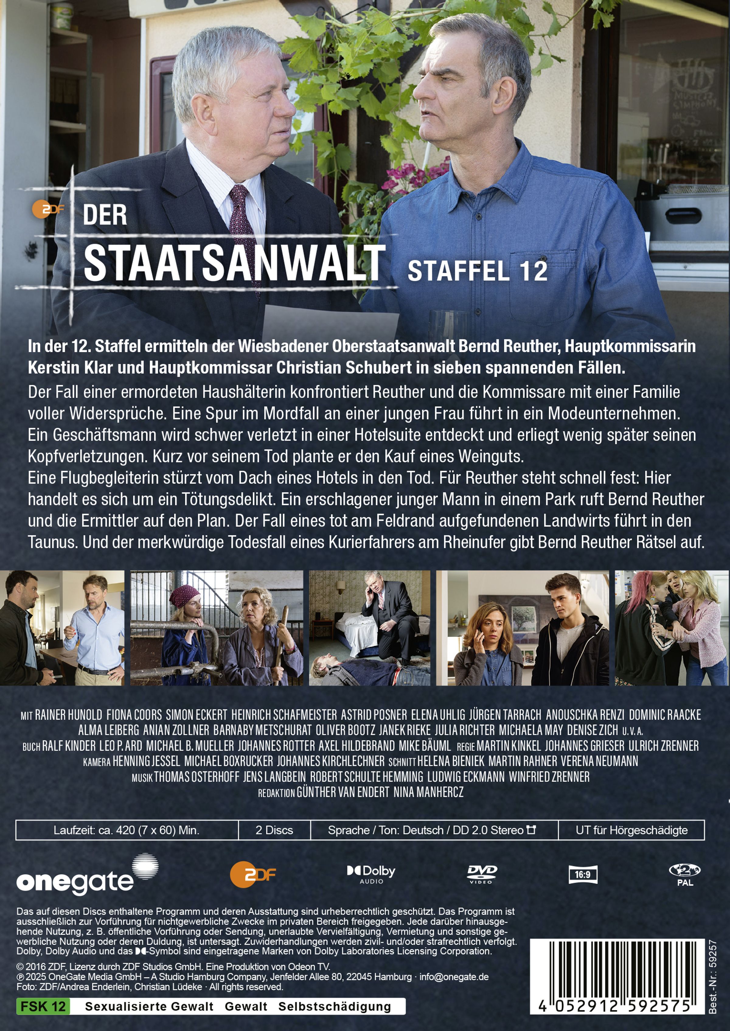 In der 12. Staffel ermitteln Oberstaatsanwalt Bernd Reuther und sein Team aus Wiesbaden - bestehend aus Hauptkommissarin Kerstin Klar und Hauptkommissar Christian Schubert - in sieben spannenden Fällen.