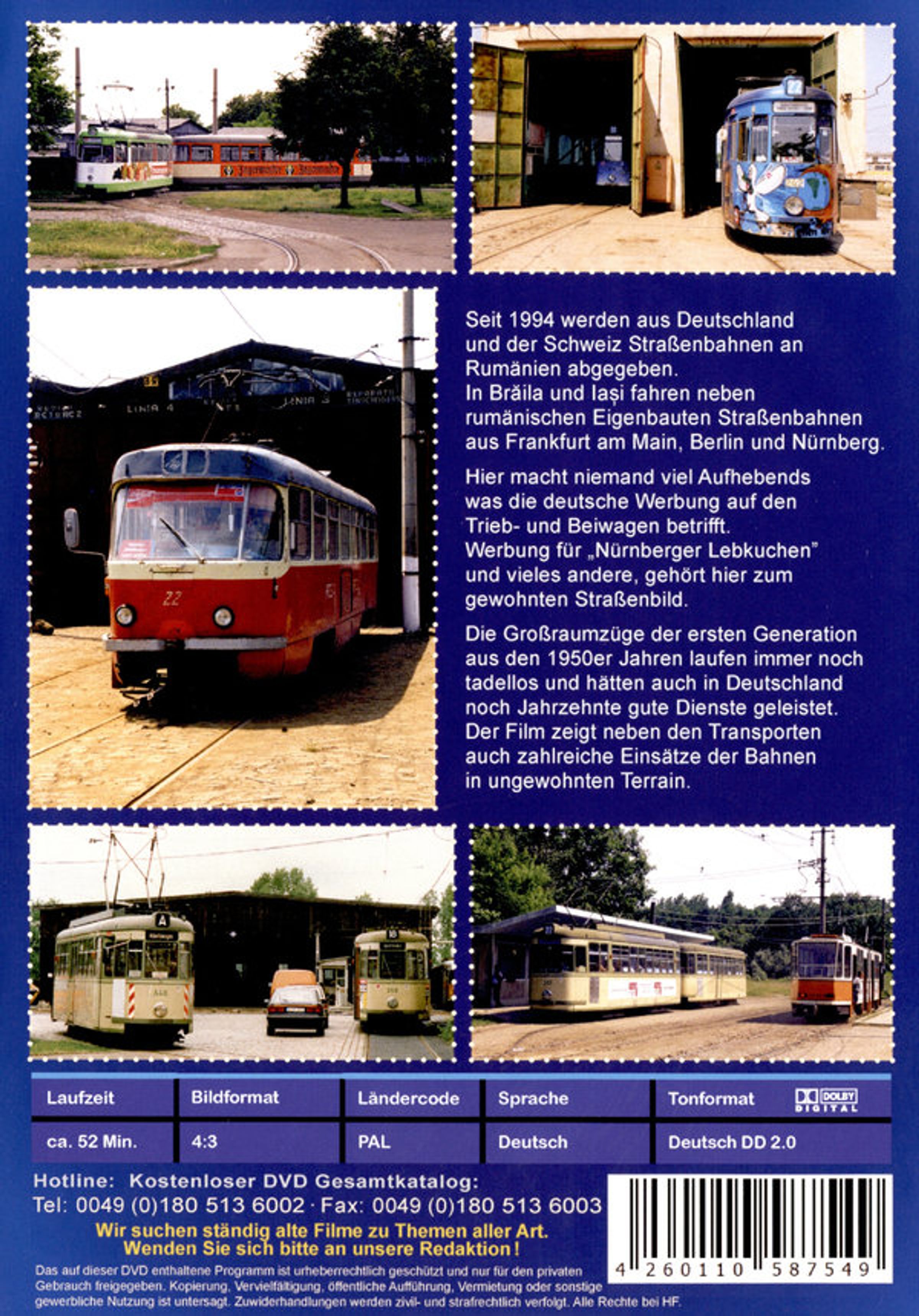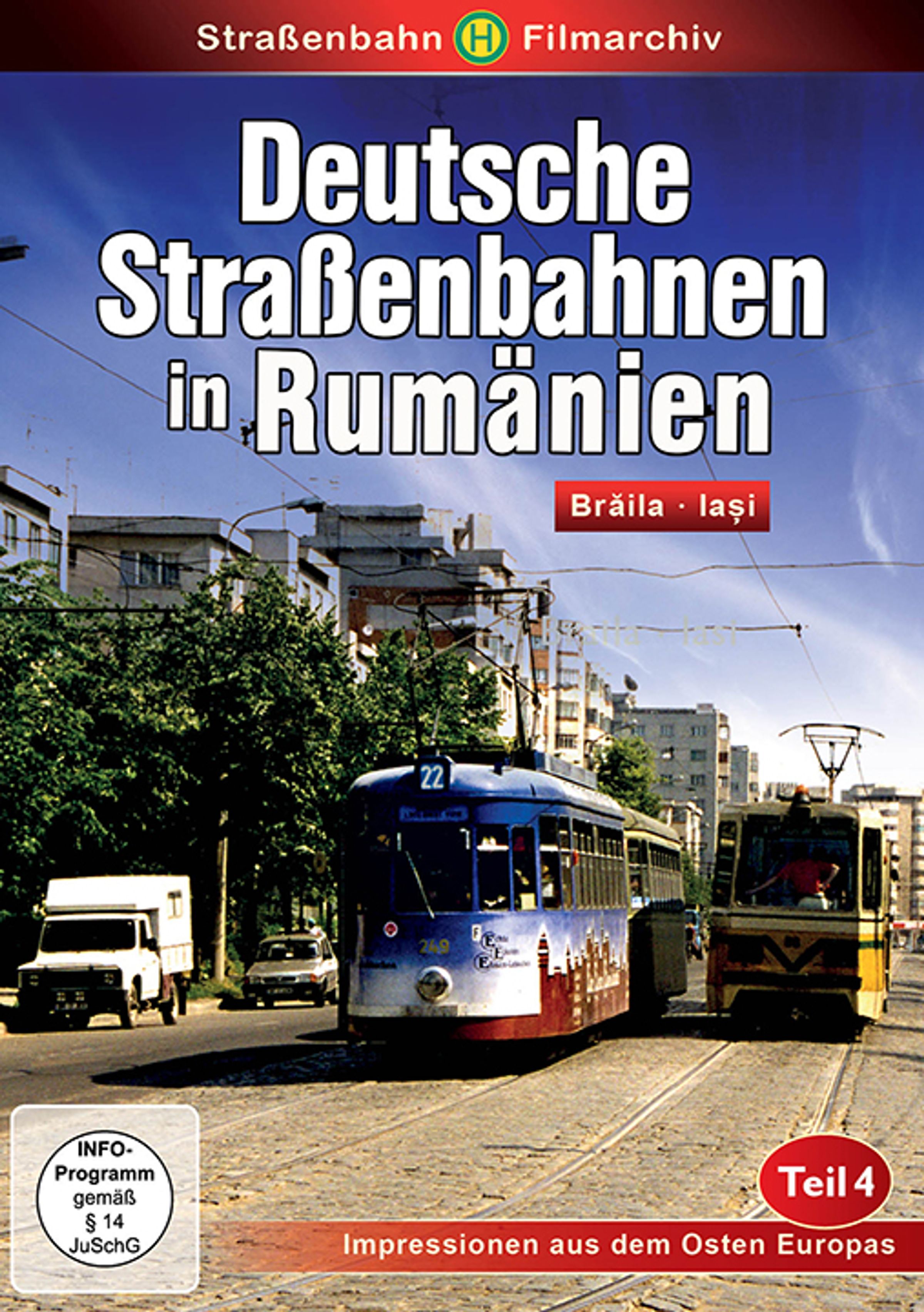 Seit 1994 werden aus Deutschland und der Schweiz Straßenbahnen an Rumänien abgegeben. In Br?ila und Ia?i fahren neben rumänischen Eigenbauten Straßenbahnen aus Frankfurt am Main, Berlin und Nürnberg. Hier macht niemand viel aufhebends was die deutsche Werbung auf den Trieb- und Beiwagen betrifft. Werbung für „Nürnberger Lebkuchen”und vieles andere, gehört hier zum gewohnten Straßenbild. Die Großraumzüge der ersten Generation aus den 1950er Jahren laufen immer noch tadellos und hätten auch in Deutschland noch Jahrzehnte gute Dienste geleistet. Der Film zeigt neben den Transporten auch zahlreiche Einsätze der Bahnen in ungewohnten Terrain.