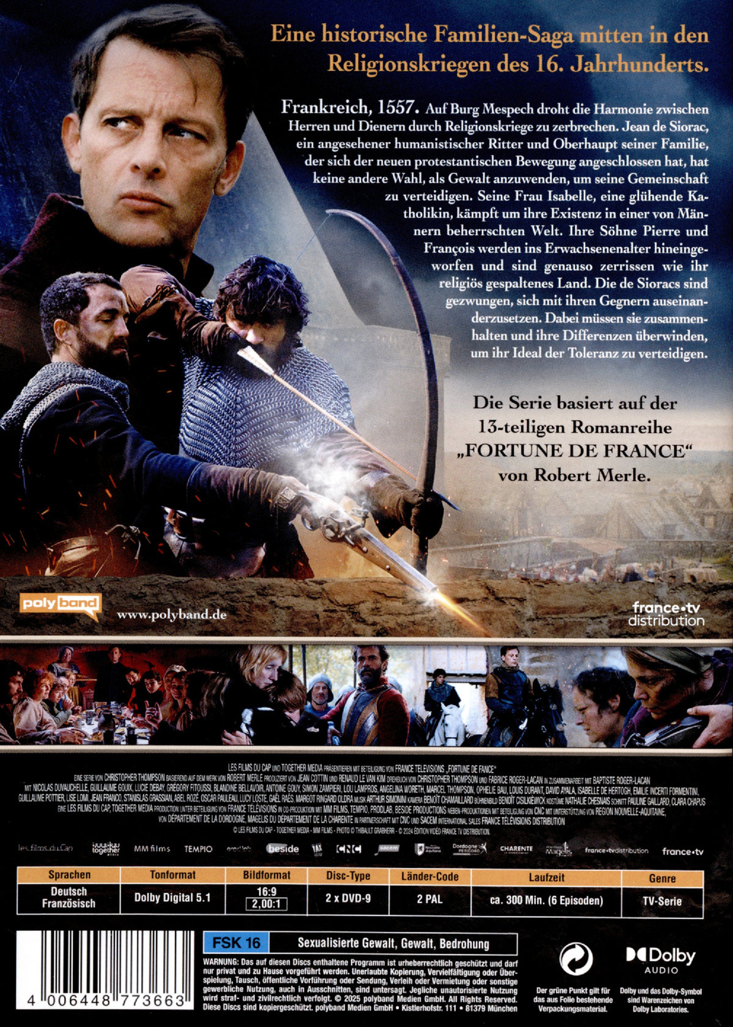 Frankreich, 1557. Auf Burg Mespech droht die Harmonie zwischen Herren und Dienern durch Religionskriege zu zerbrechen. Jean de Siorac, ein angesehener humanistischer Ritter und Oberhaupt seiner Familie, der sich der neuen protestantischen Bewegung angeschlossen hat, hat keine andere Wahl, als Gewalt anzuwenden, um seine Gemeinschaft zu verteidigen. Seine Frau Isabelle, eine glühende Katholikin, kämpft um ihre Existenz in einer von Männern beherrschten Welt. Ihre Söhne Pierre und François werden ins Erwachsenenalter hineingeworfen und sind genauso zerrissen wie ihr religiös gespaltenes Land. Die Sioracs sind gezwungen, sich mit ihren Gegnern auseinanderzusetzen. Dabei müssen sie zusammenhalten und ihre Differenzen überwinden, um ihr Ideal der Toleranz zu verteidigen.