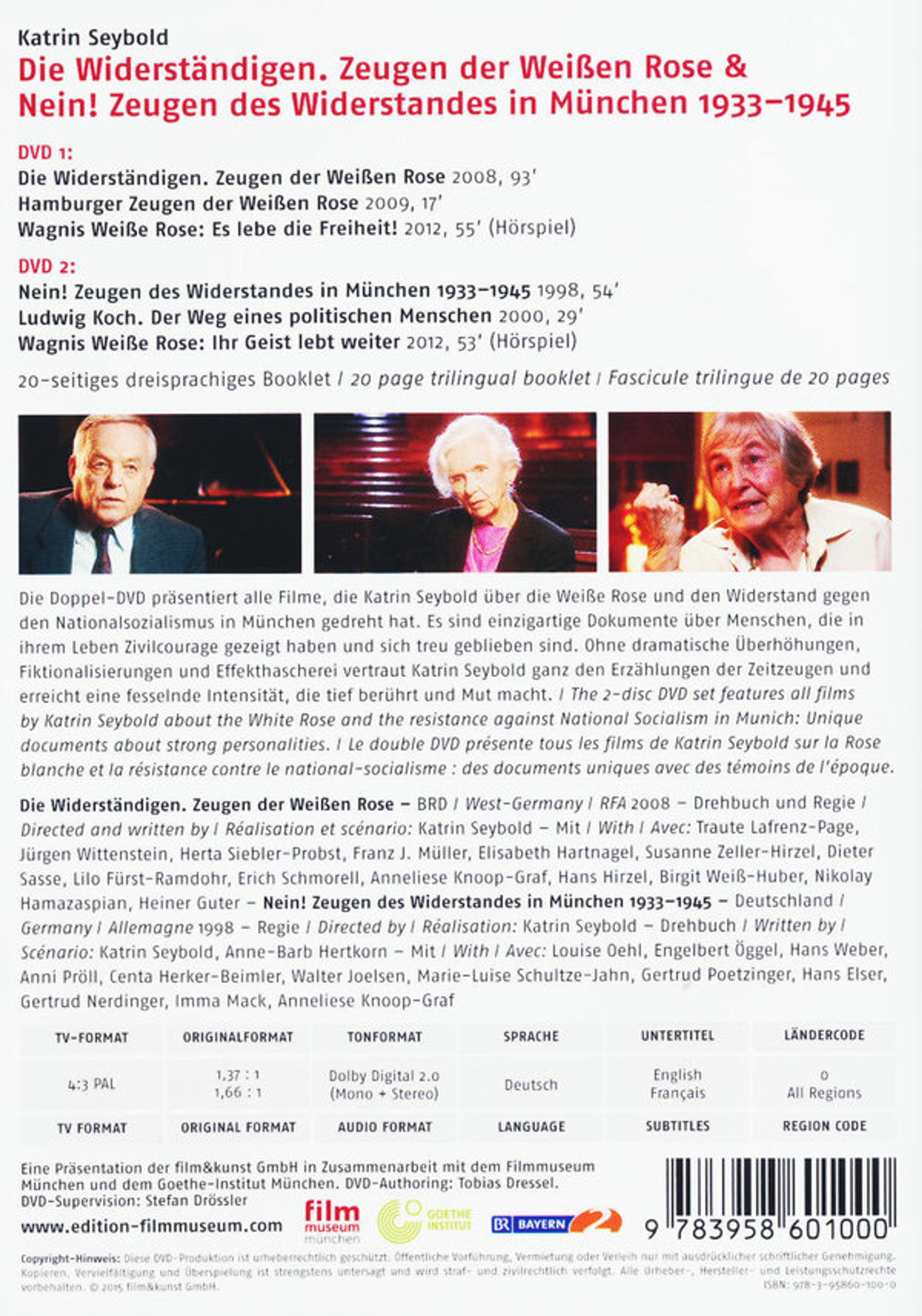 - 20-seitiges, dreisprachiges Booklet; Sämtliche weitere Filme von Katrin Seybold über die Weiße Rose und den Widerstand in München