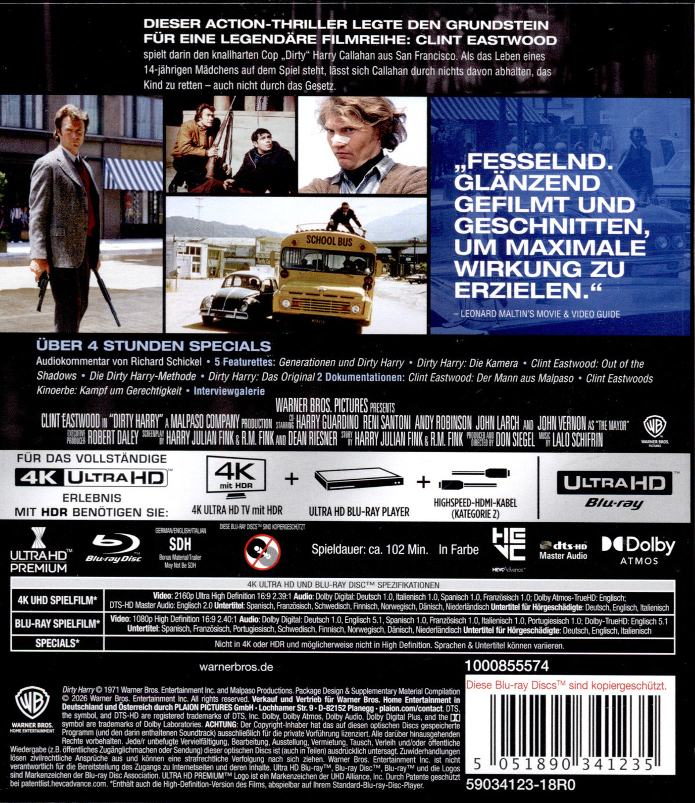+ Featurettes: Generationen und Dirty Harry | Dirty Harry: Die Kamera | Clint Eastwood: Out of the Shadows | Die Dirty-Harry-Methode | Dirty Harry: Das Original