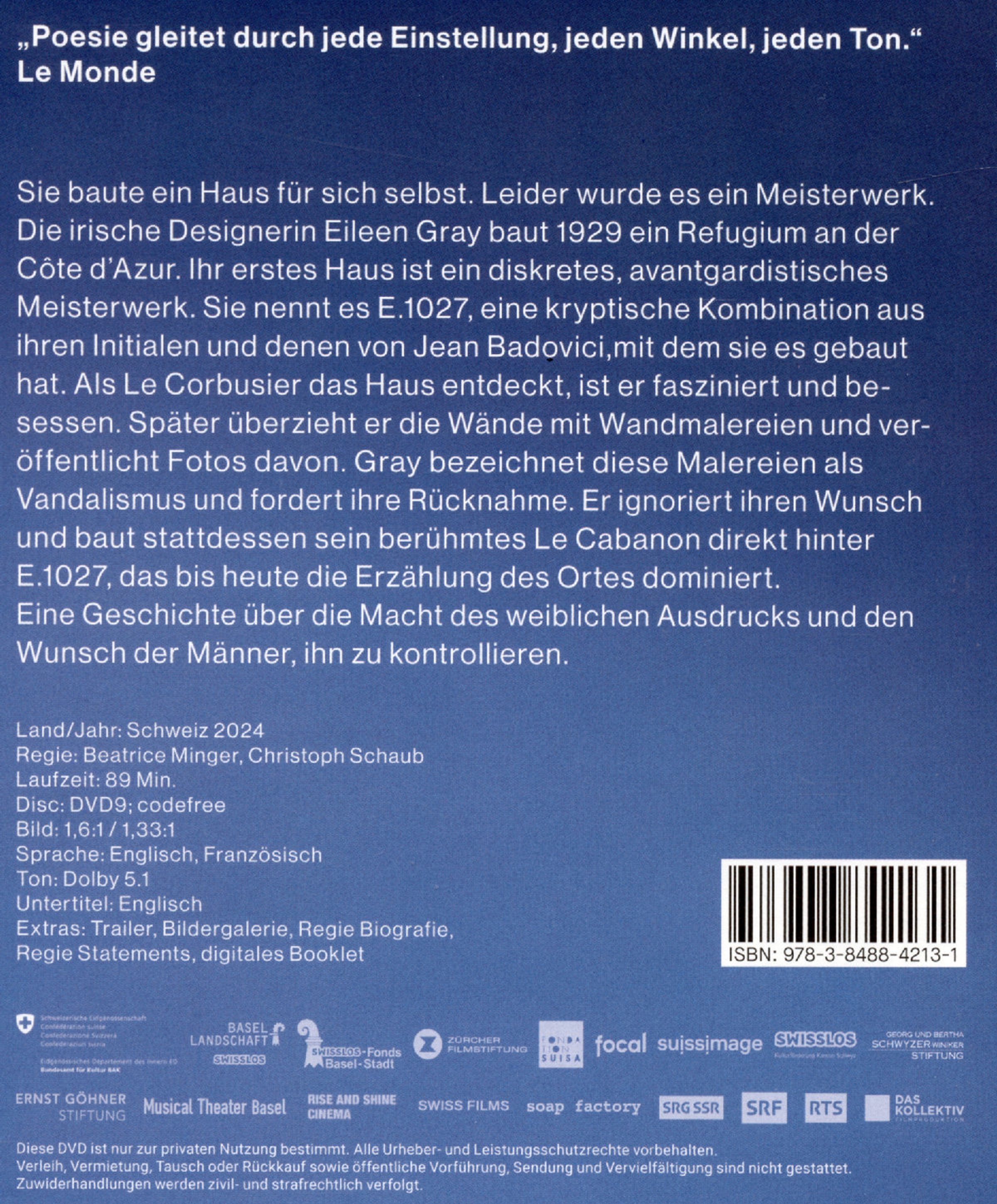 Sie baute ein Haus für sich selbst. Leider wurde es ein Meisterwerk. Die irische Designerin Eileen Gray baut 1929 ein Refugium an der Côte d’Azur. Ihr erstes Haus ist ein diskretes, avantgardistisches Meisterwerk. Sie nennt es E.1027, eine kryptische Kombination aus ihren Initialen und denen von Jean Badovici, mit dem sie es gebaut hat. Als Le Corbusier das Haus entdeckt, ist er fasziniert und besessen. Später überzieht er die Wände mit Wandmalereien und veröffentlicht Fotos davon. Gray bezeichnet diese Malereien als Vandalismus und fordert ihre Rücknahme. Er ignoriert ihren Wunsch und baut stattdessen sein berühmtes Le Cabanon diekt hinter E.1027, das bis heute die Erzählung des Ortes dominiert. Eine Geschichte über die Macht des weiblichen Ausdrucks und den Wunsch der Männer, ihn zu kontrollieren.