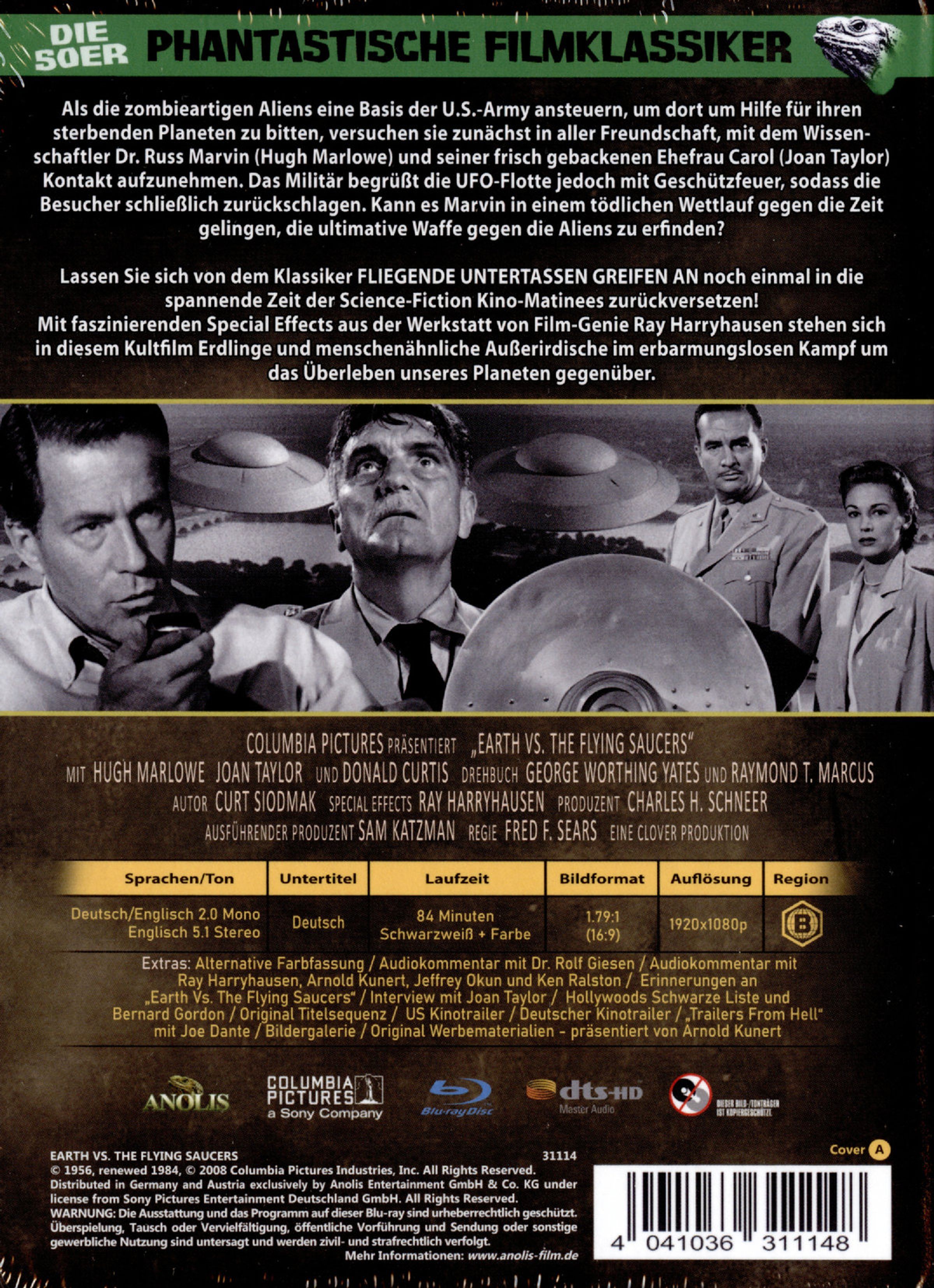 Lassen Sie sich von dem Klassiker FLIEGENDE UNTERTASSEN GREIFEN AN noch einmal in die spannende Zeit der Science-Fiction Kino-Matinees zurückversetzen! Mit faszinierenden Special Effects aus der Werkstatt von Film-Genie Ray Harryhausen stehen sich in diesem Kultfilm Erdlinge und menschenähnliche Außerirdische im erbarmungslosen Kampf um das Überleben unseres Planeten gegenüber.