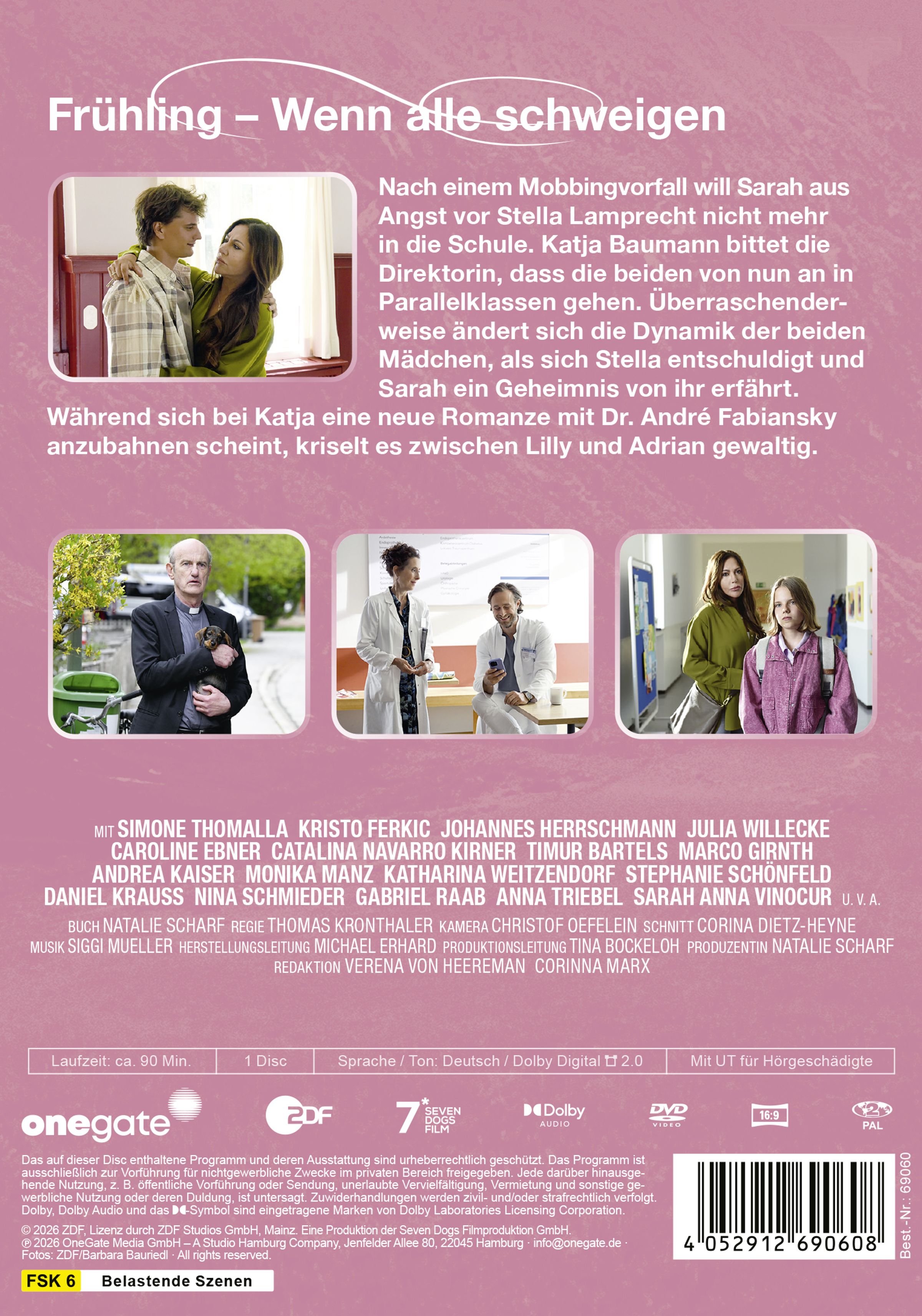 Text: "Frühling – Wenn alle schweigen", "FSK ab 6 freigegeben". Frau mit Kind, unten Kind mit Hund und Frau., DVD