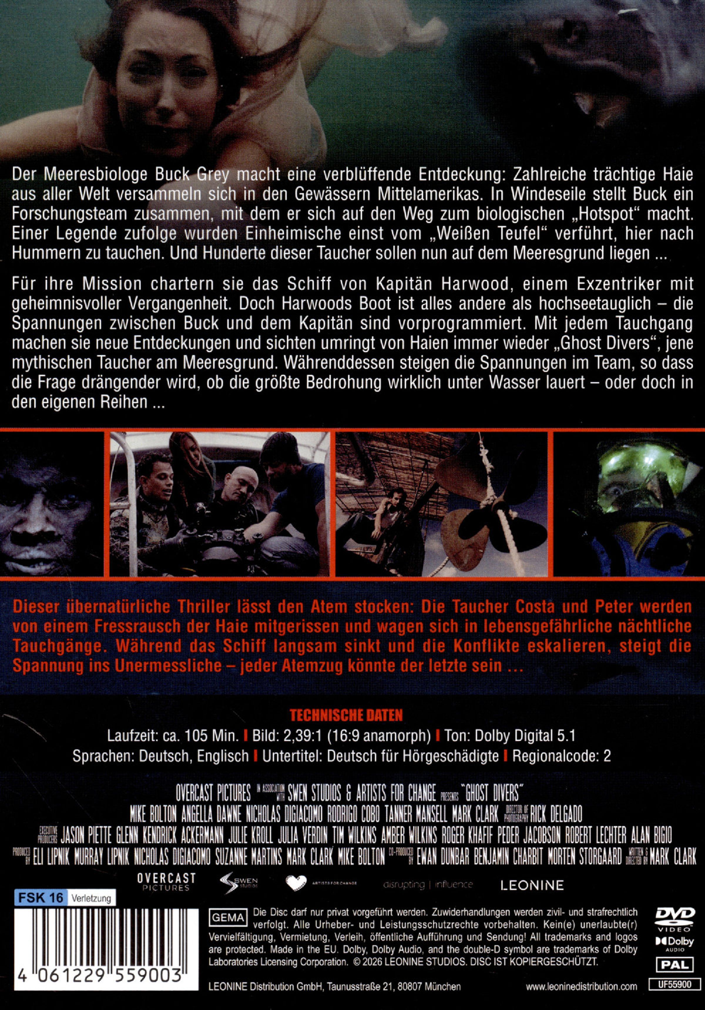 Für ihre Mission chartern sie das Schiff von Kapitän Harwood, einem Exzentriker mit geheimnisvoller Vergangenheit. Doch Harwoods Boot ist alles andere als hochseetauglich - die Spannungen zwischen Buck und dem Kapitän sind vorprogrammiert. Mit jedem Tauchgang machen sie neue Entdeckungen und sichten umringt von Haien immer wieder »Ghost Divers«, jene mythischen Taucher am Meeresgrund. Währenddessen steigen die Spannungen im Team, so dass die Frage drängender wird, ob die größte Bedrohung unter Wasser lauert - oder doch in den eigenen Reihen ...