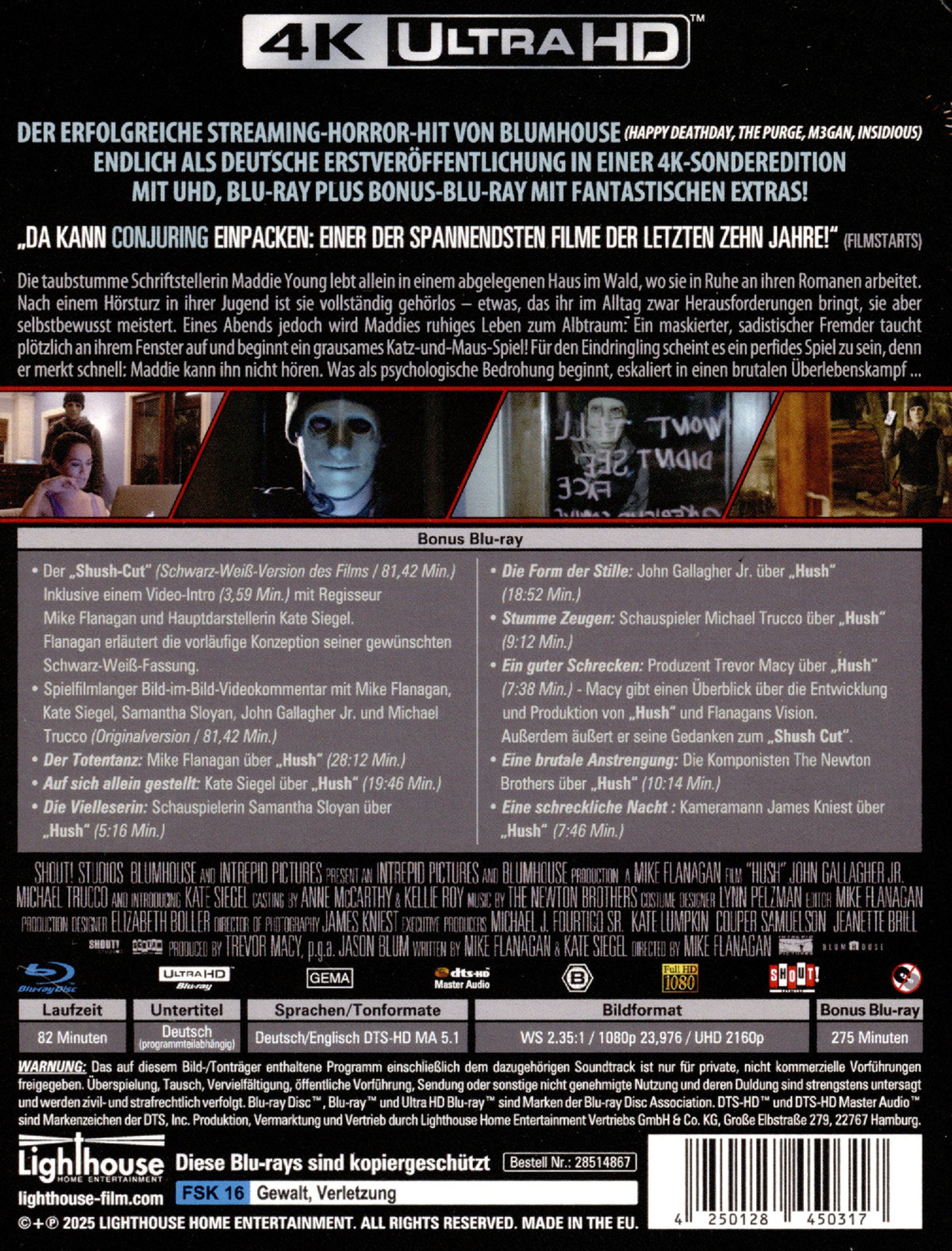 Hush (Collector's Edition) (Ultra HD Blu-ray & Blu-ray)