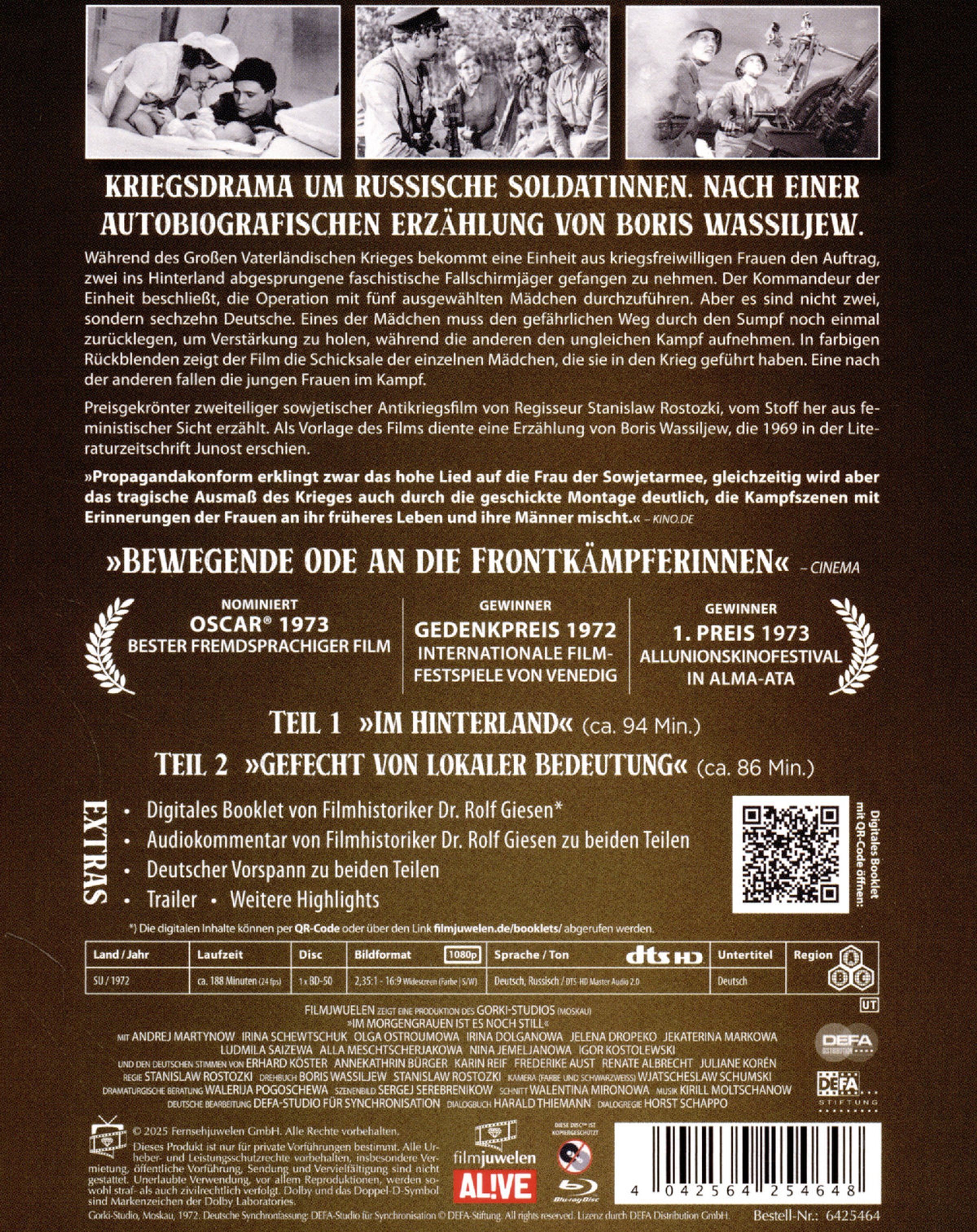 In farbigen Rückblenden zeigt der Film die Schicksale der einzelnen Mädchen, die sie in den Krieg geführt haben. Eine nach dem anderen fallen die jungen Frauen im Kampf. - Als Vorlage des Films diente eine Erzählung von Boris Wassiljew, die 1969 in der Literaturzeitschrift Junost erschien.