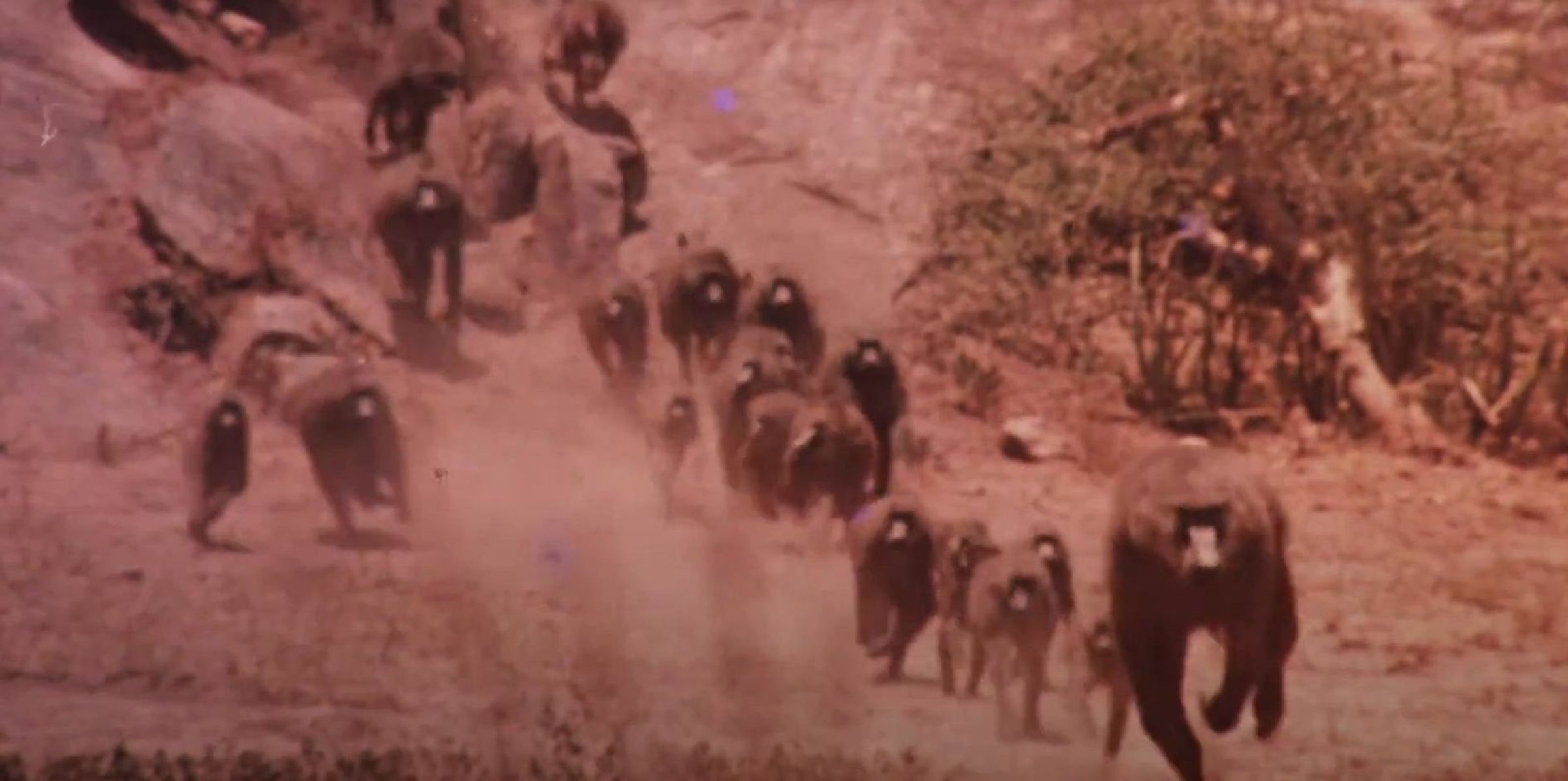 Afrika 1986: Eine schreckliche Dürre-Periode beherrscht das Land. Zehntausende von halb-verdursteten Pavian-Horden greifen ein Massai-Dorf an. Die ausgetrockneten Gehirne der gepeinigten Kreaturen haben die Kontrolle über sich selbst verloren. In den Affenschädeln brennt nur noch ein Gedanke - Futter! Tierhorror vom Feinsten!