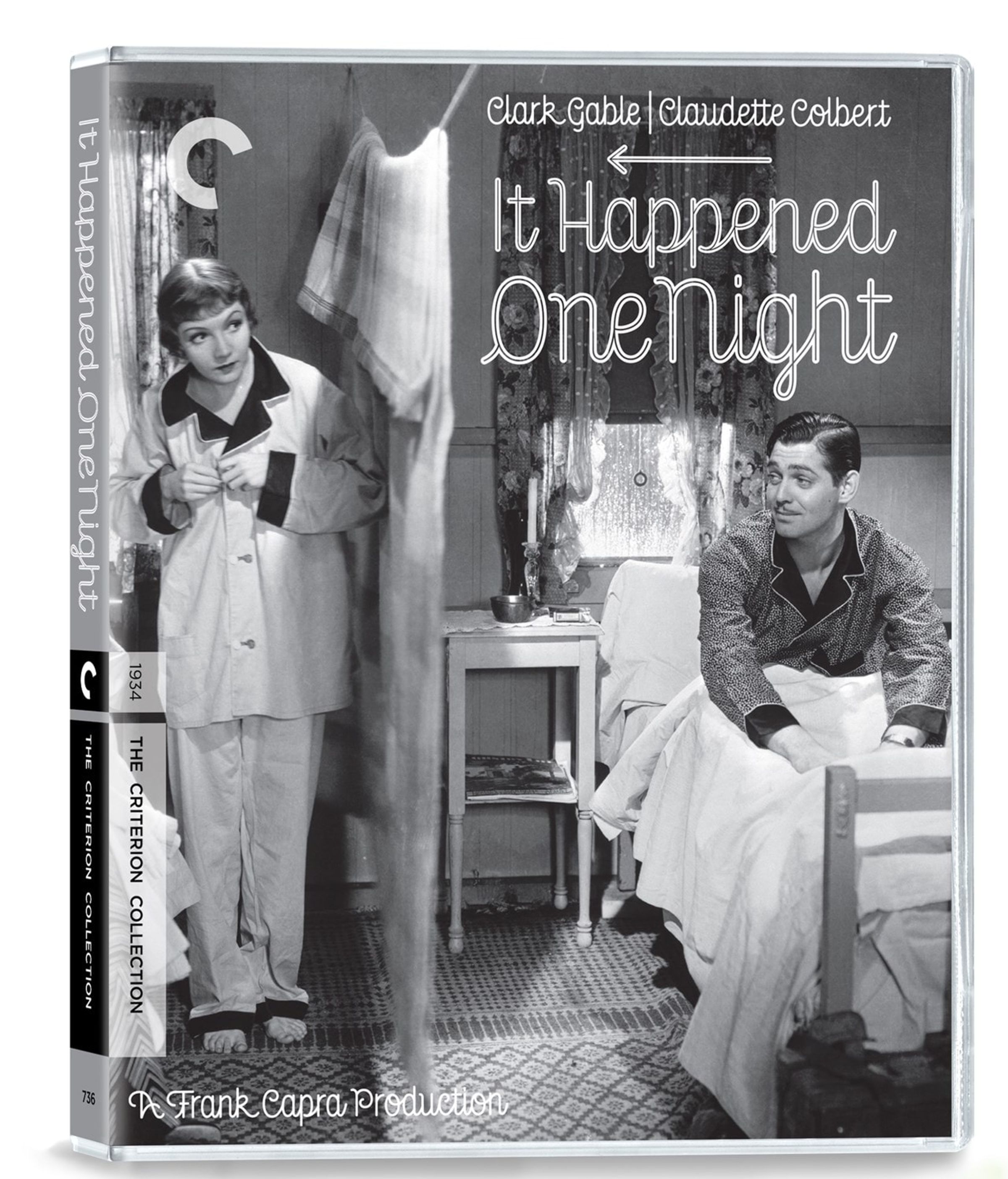 DVD-Cover: „It Happened One Night“. Zwei Personen in Schwarz-Weiß, Frau im Bademantel, Mann im Bett., Blu-ray Disc