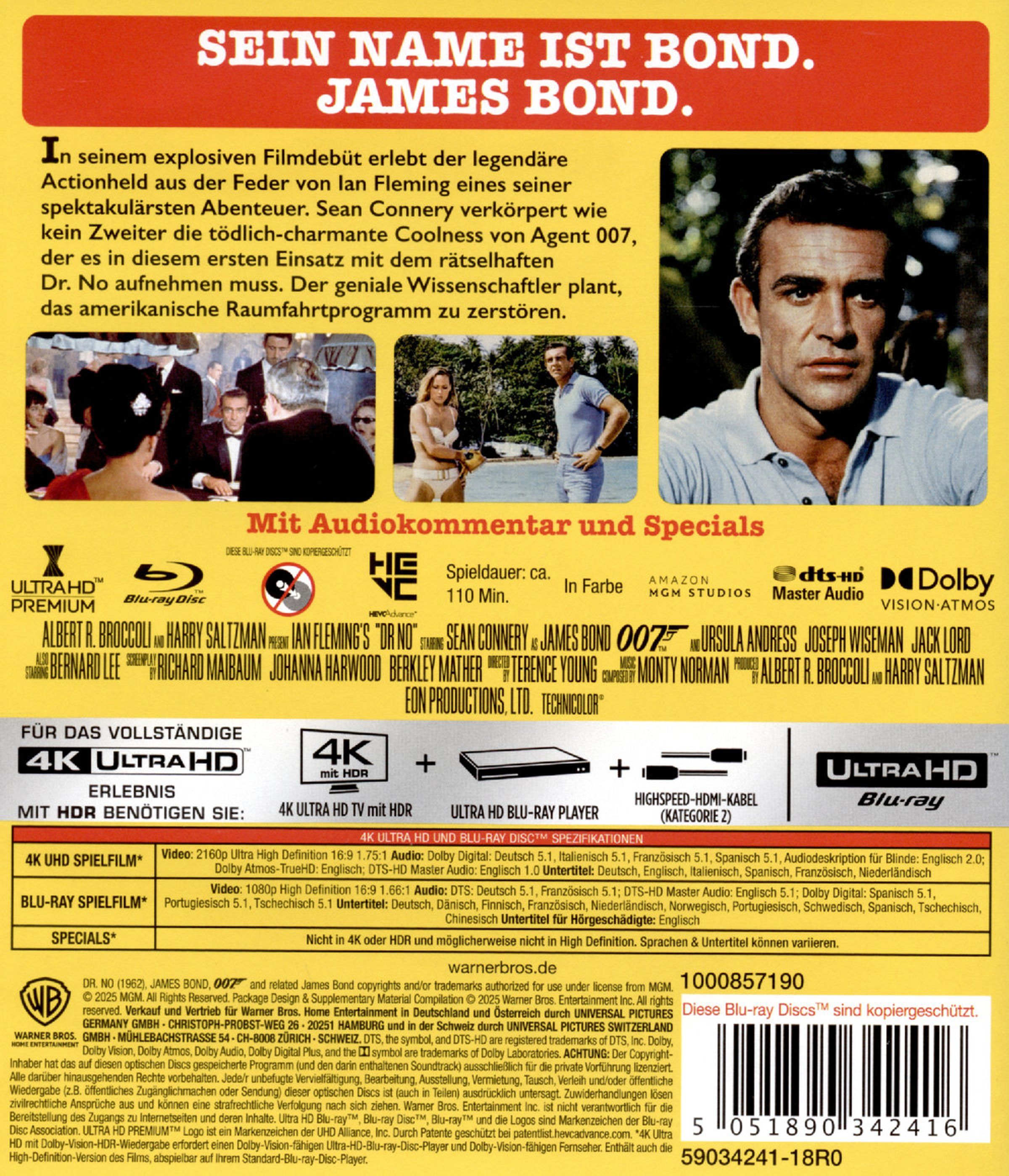 In seinem explosiven Filmdebüt erlebt der legendäre Actionheld aus der Feder von Ian Fleming eines seiner spektakulärsten Abenteuer. Sean Connery verkörpert wie kein Zweiter die tödlich-charmante Coolness von Agent 007, der es in diesem ersten Einsatz mit dem rätselhaften Dr. No aufnehmen muss. Der geniale Wissenschaftler plant, das amerikanische Raumfahrtprogramm zu zerstören.