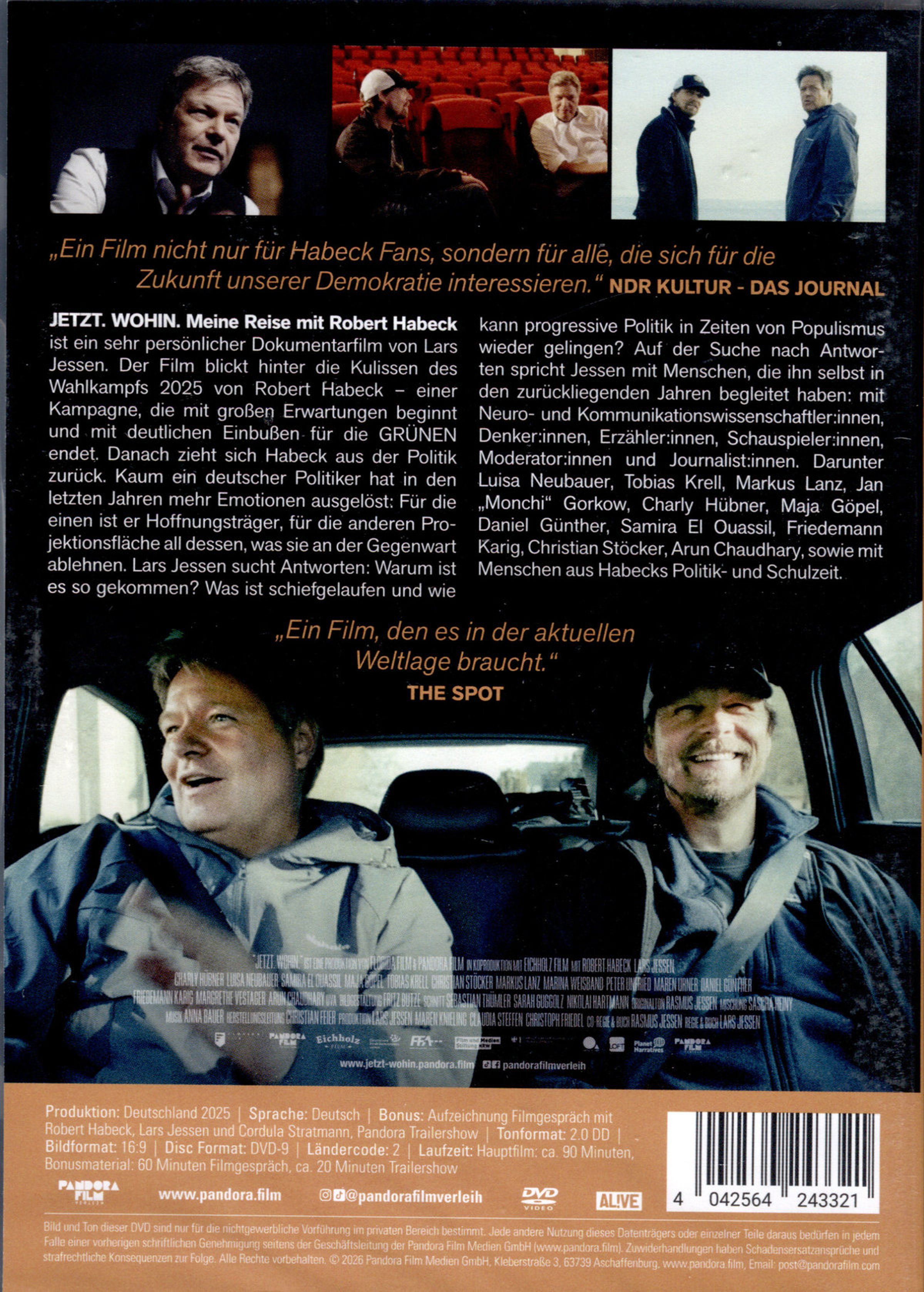 JETZT. WOHIN. Meine Reise mit Robert Habeck ist ein sehr persönlicher Dokumentarfilm von Lars Jessen. Der Film blickt hinter die Kulissen des Wahlkampfs 2025 von Robert Habeck - einer Kampagne, die mit großen Erwartungen beginnt und mit deutlichen Einbußen für die GRÜNEN endet. Danach zieht sich Habeck aus der Politik zurück. Kaum ein deutscher Politiker hat in den letzten Jahren mehr Emotionen ausgelöst: Für die einen ist er Hoffnungsträger, für die anderen Projektionsfläche all dessen, was sie an der Gegenwart ablehnen. Lars Jessen sucht Antworten: Warum ist es so gekommen? Was ist schief gelaufen und wie kann progressive Politik in Zeiten von Populismus wieder gelingen? Auf der Suche nach Antworten spricht Jessen mit Menschen, die ihn selbst in den zurück liegenden Jahren begleitet haben: mit Neuro- und Kommunikationswissenschaftlern, Denkern, Erzählern, Schauspielern, Moderatoren und Journalisten. Darunter Luisa Neubauer, Tobias Krell, Markus Lanz, Jan Monchi Gorkow, Charly Hübner, Maja Göpel, Daniel Günther, Samira El Ouassil, Friedemann Karig, Christian Stöcker, Arun Chaudhary, sowie mit Menschen aus Habecks Politik- und Schulzeit.