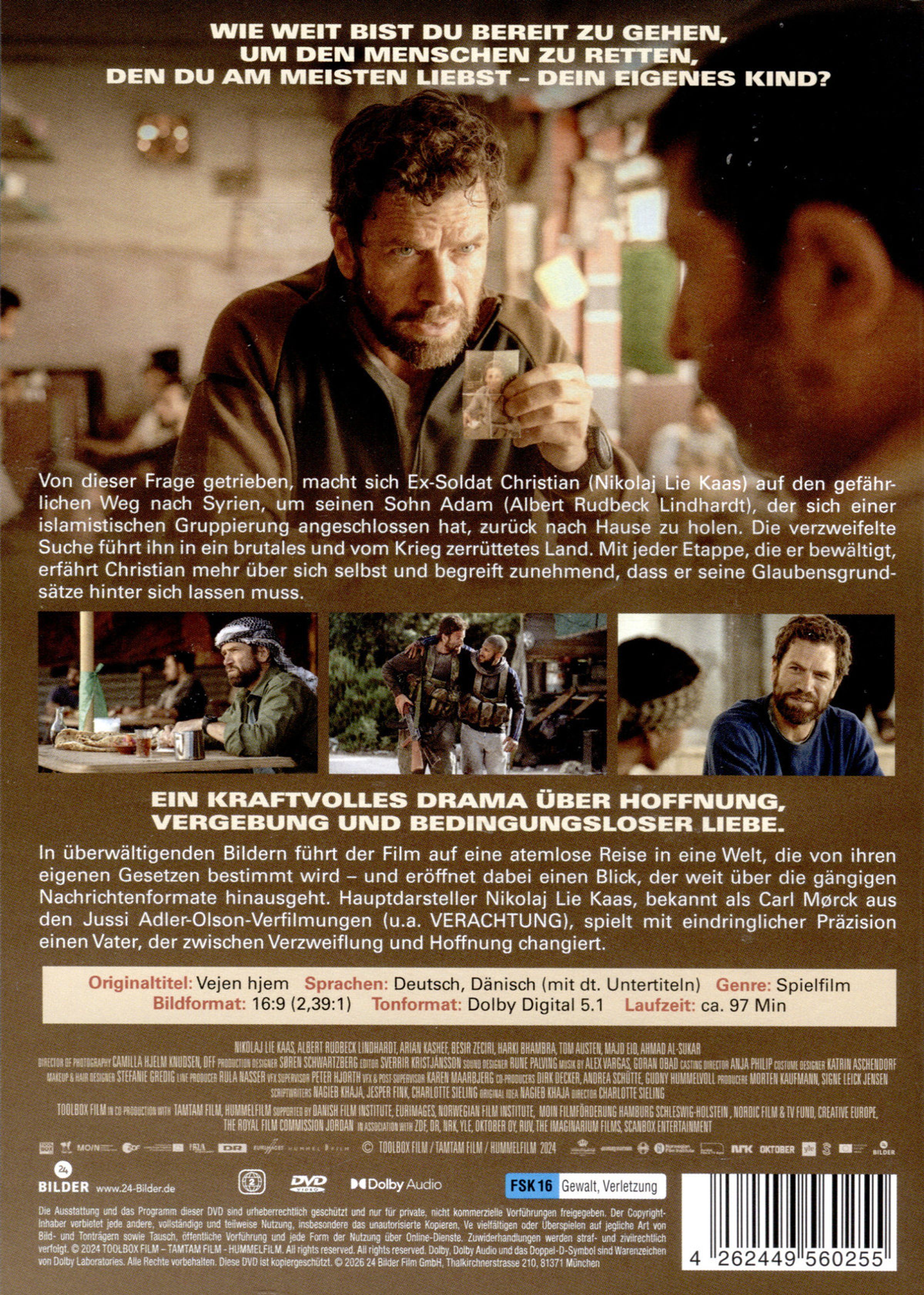 Wie weit bist du bereit zu gehen, um den Menschen zu retten, den du am meisten liebst - dein eigenes Kind? Von dieser Frage getrieben, macht sich Ex-Soldat Christian auf den gefährlichen Weg nach Syrien, um seinen Sohn Adam, der sich einer islamistischen Gruppierung angeschlossen hat, zurück nach Hause zu holen. Die verzweifelte Suche führt ihn in ein brutales und vom Krieg zerrüttetes Land. Mit jeder Etappe, die er bewältigt, erfährt Christian mehr über sich selbst und begreift zunehmend, dass er seine Glaubensgrundsätze hinter sich lassen muss.